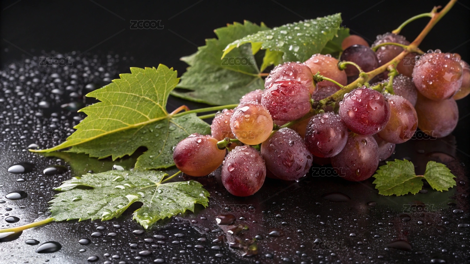 葡萄,水果,水珠,绿叶,新鲜,潮湿,食材,自然,质感,光泽