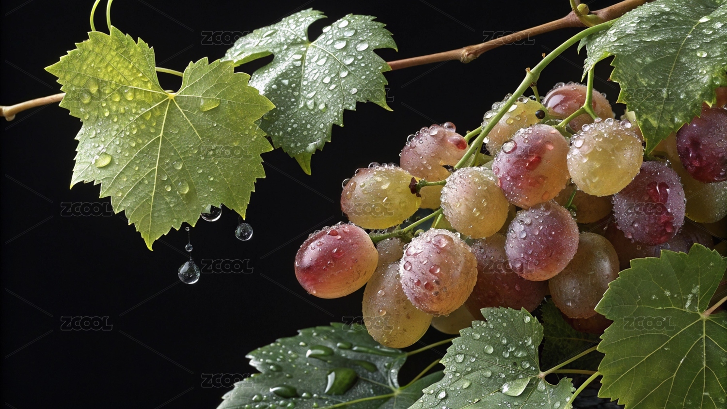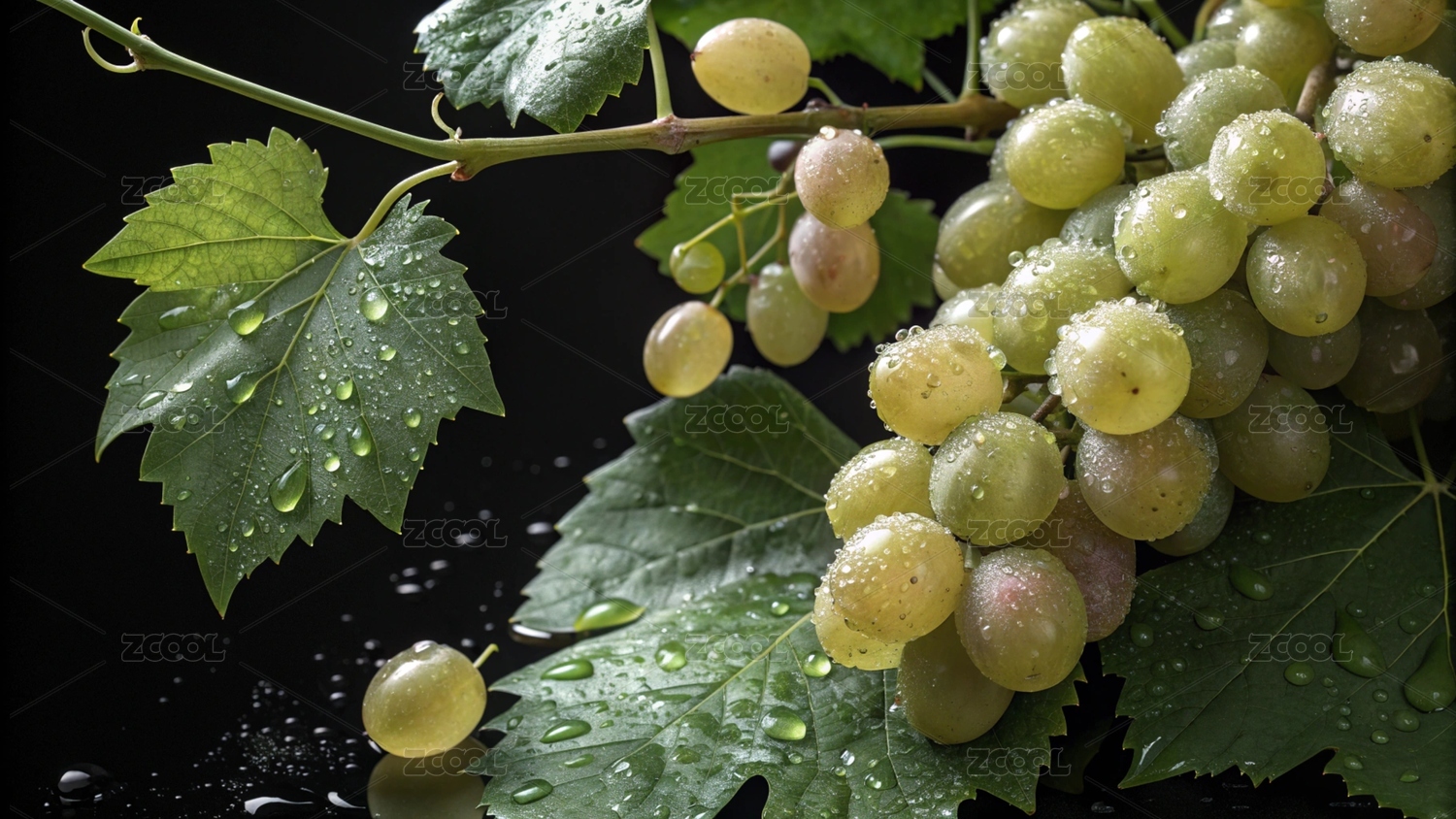 葡萄,水果,水珠,绿叶,新鲜,潮湿,食材,自然,光泽,饱满