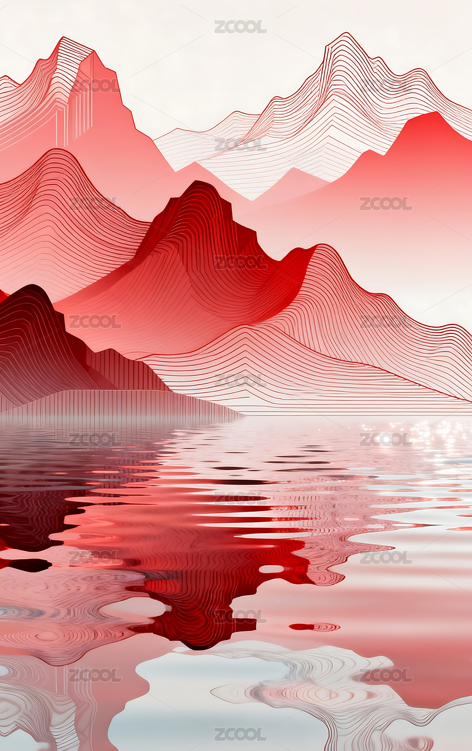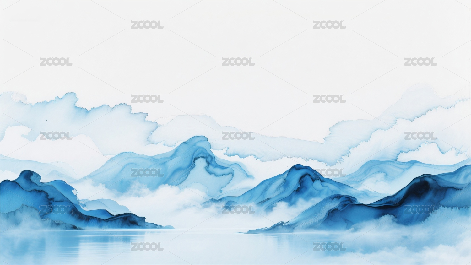 水墨,山水,晕染,山,湖面,国风,插画,山脉,远山,黑白