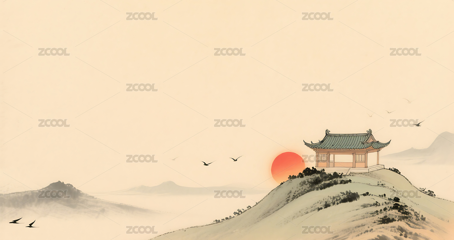 中国传统风格的极简山水画
