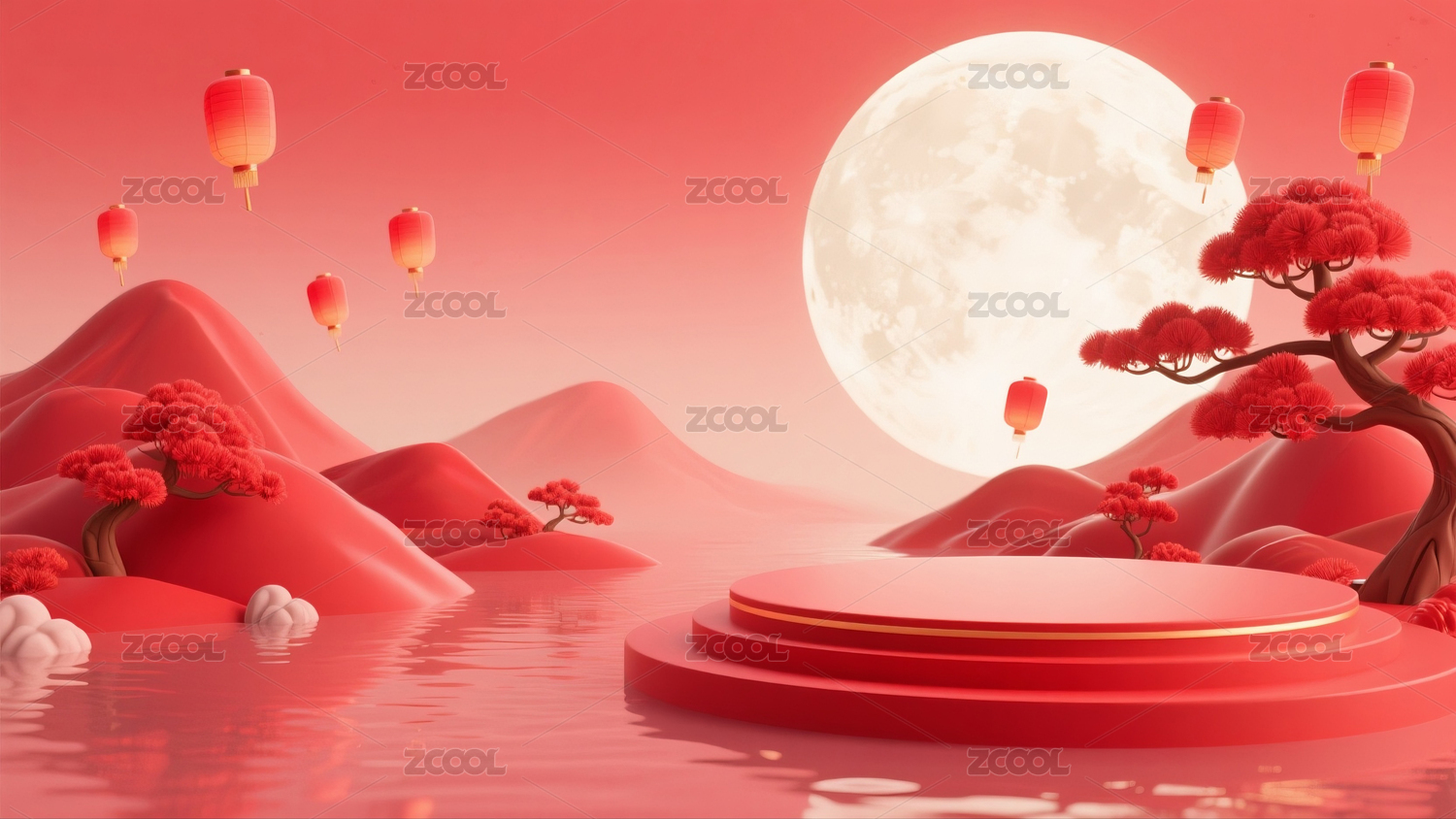 国庆节,中秋节,国庆,中秋,展台,舞台,产品展台,展示,山脉,月亮