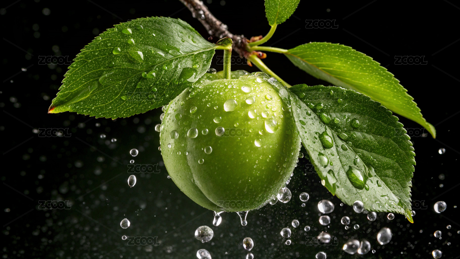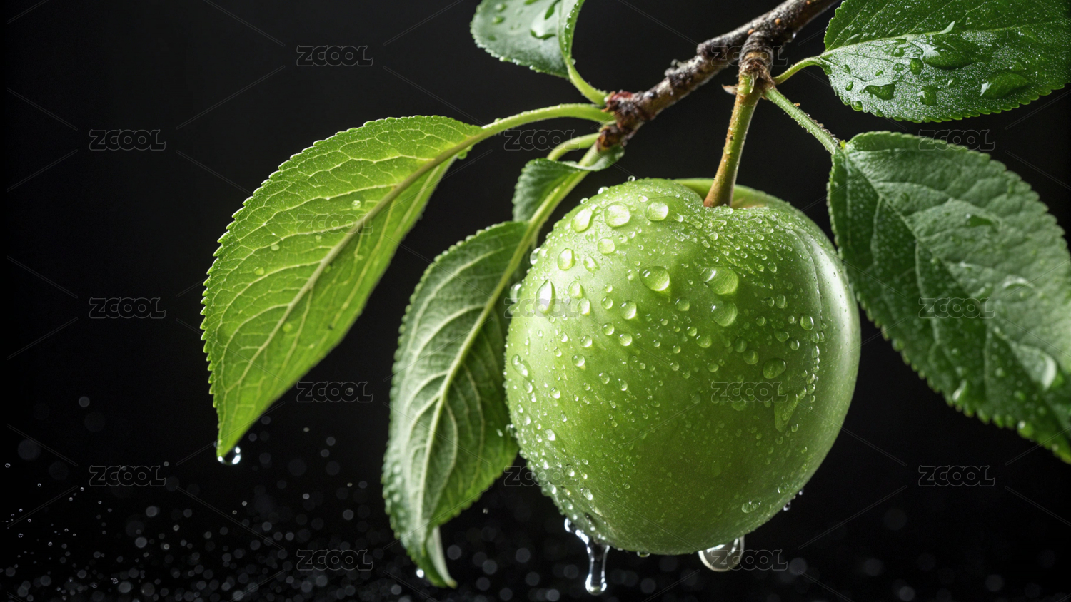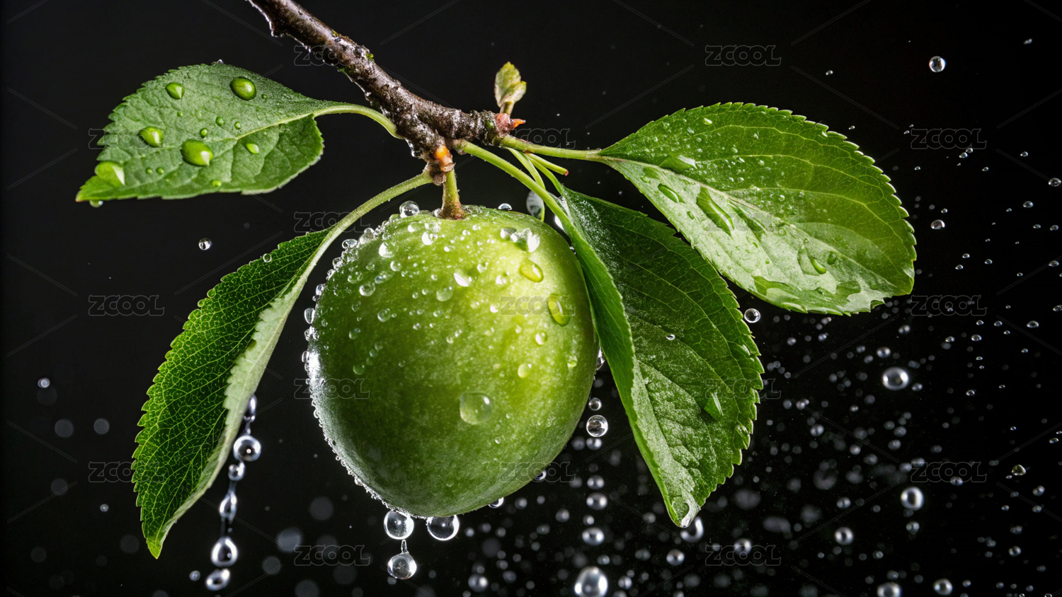 青果,树枝,叶片,露水,果实,植物,自然,水珠,绿叶,枝丫