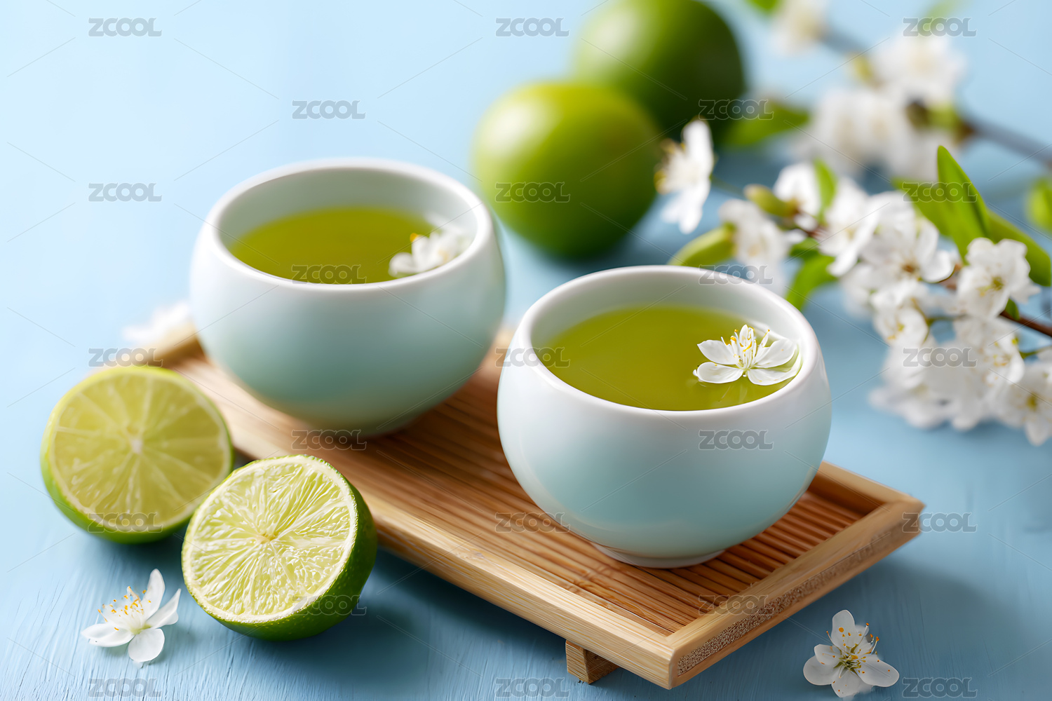 简约,清新,装饰,绿叶,绿色,茶壶,水果,茶杯,西柚,青柠