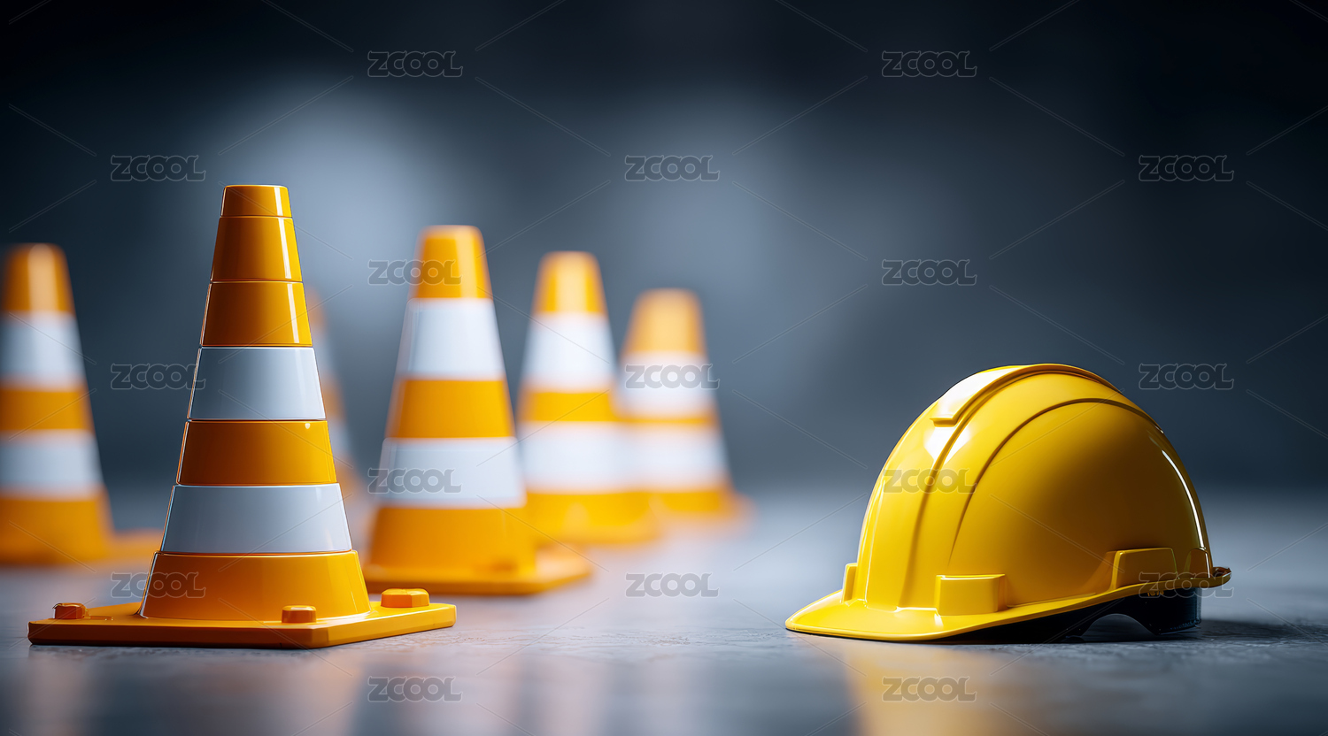 安全帽,交通锥,路锥,警示,工地,建筑,施工,安全,防护,警告