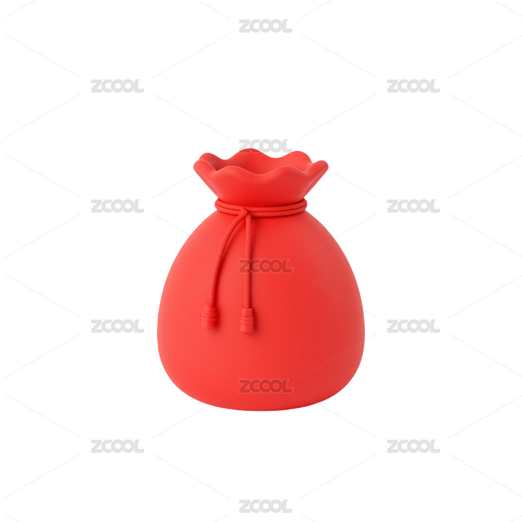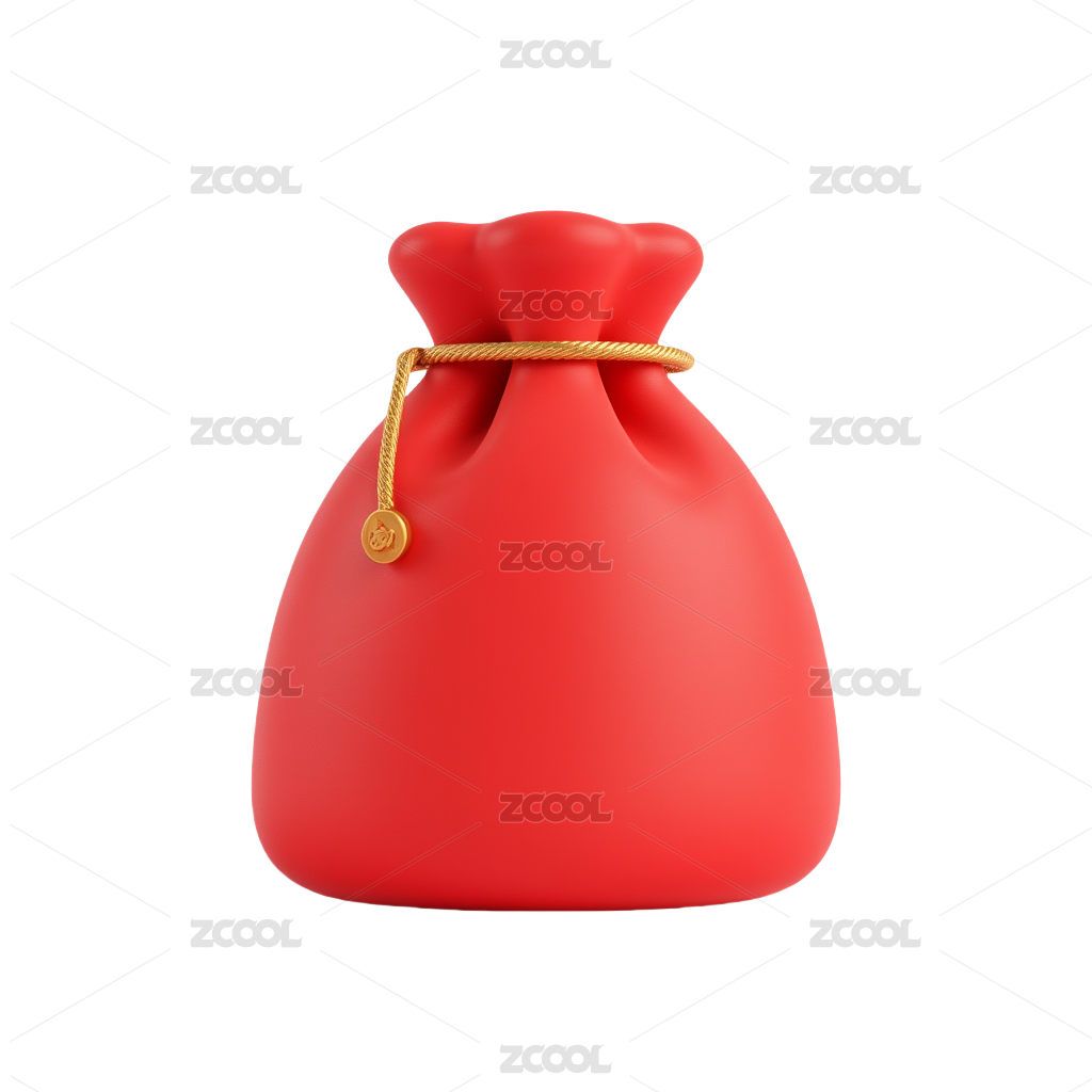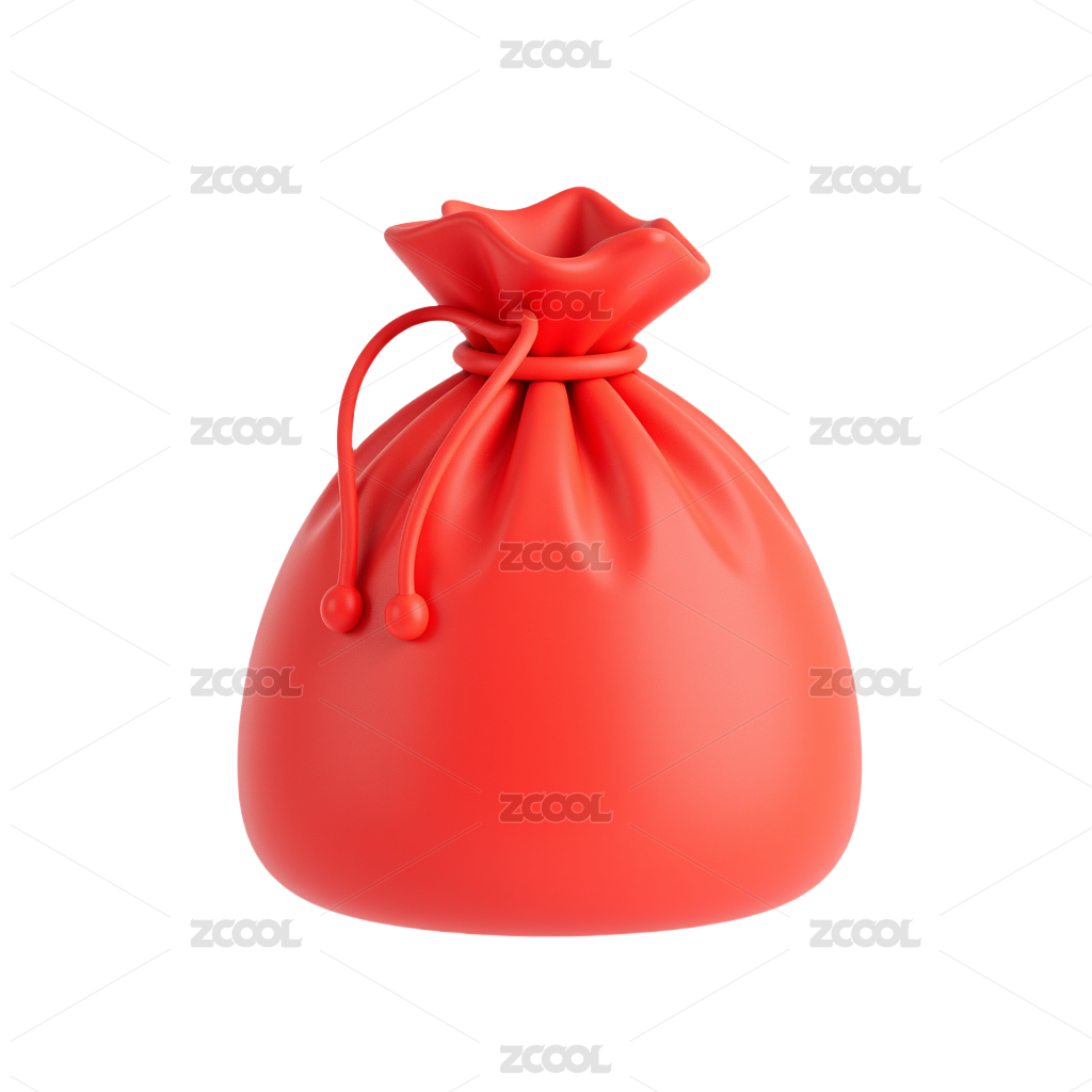 红色福袋3D插画在透明背景上