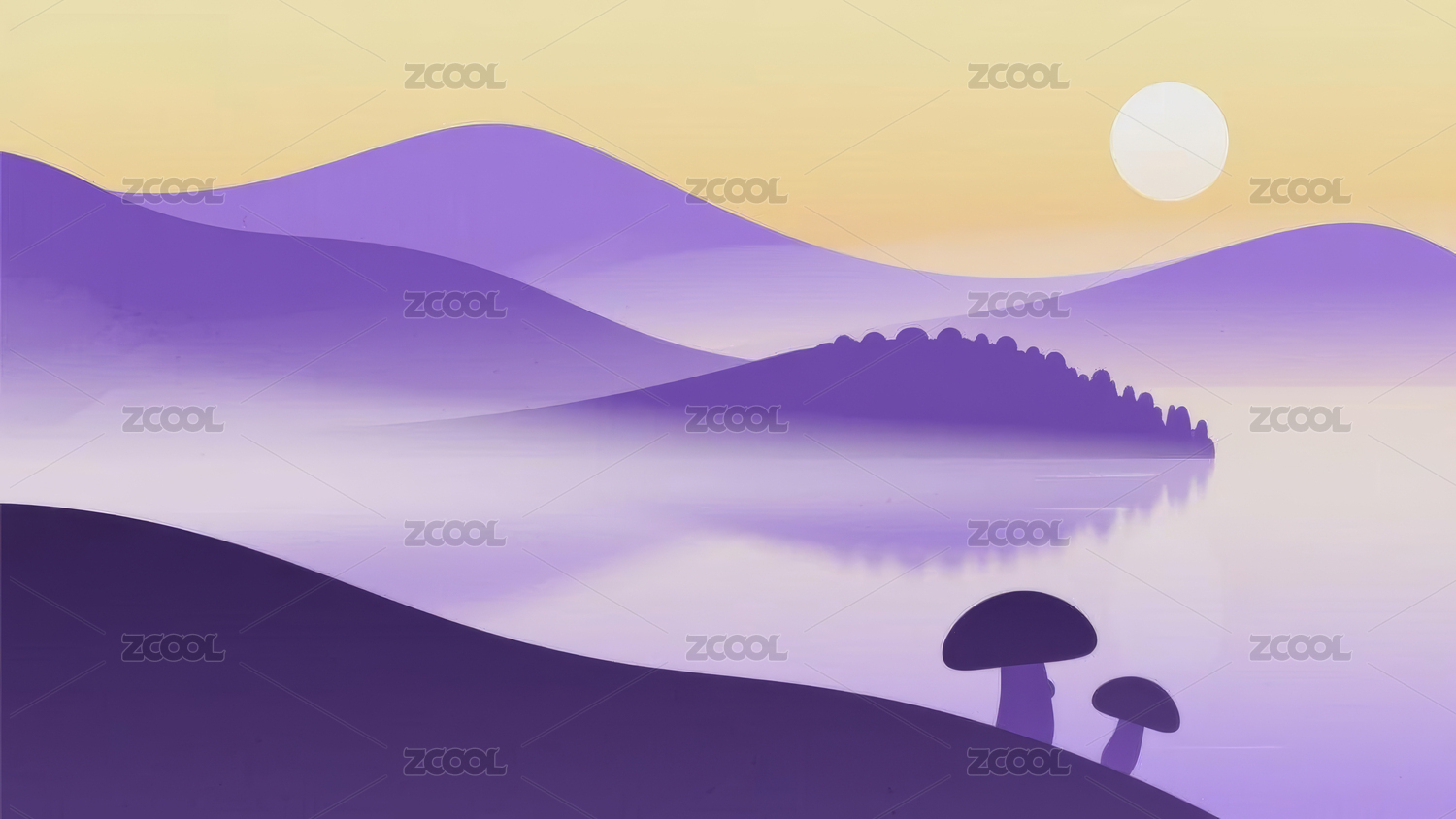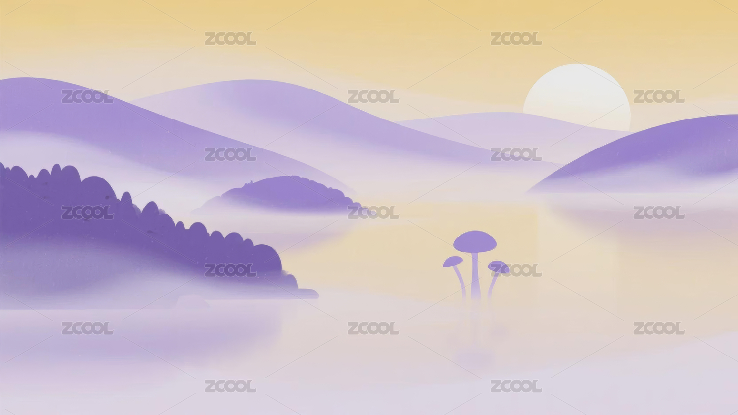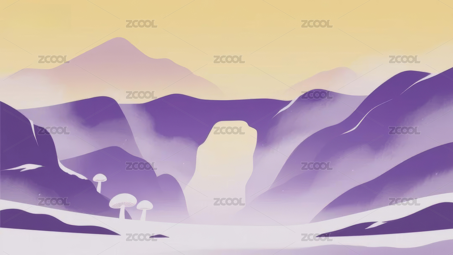 梦幻色彩,山峦和云雾,超现实插画,背景