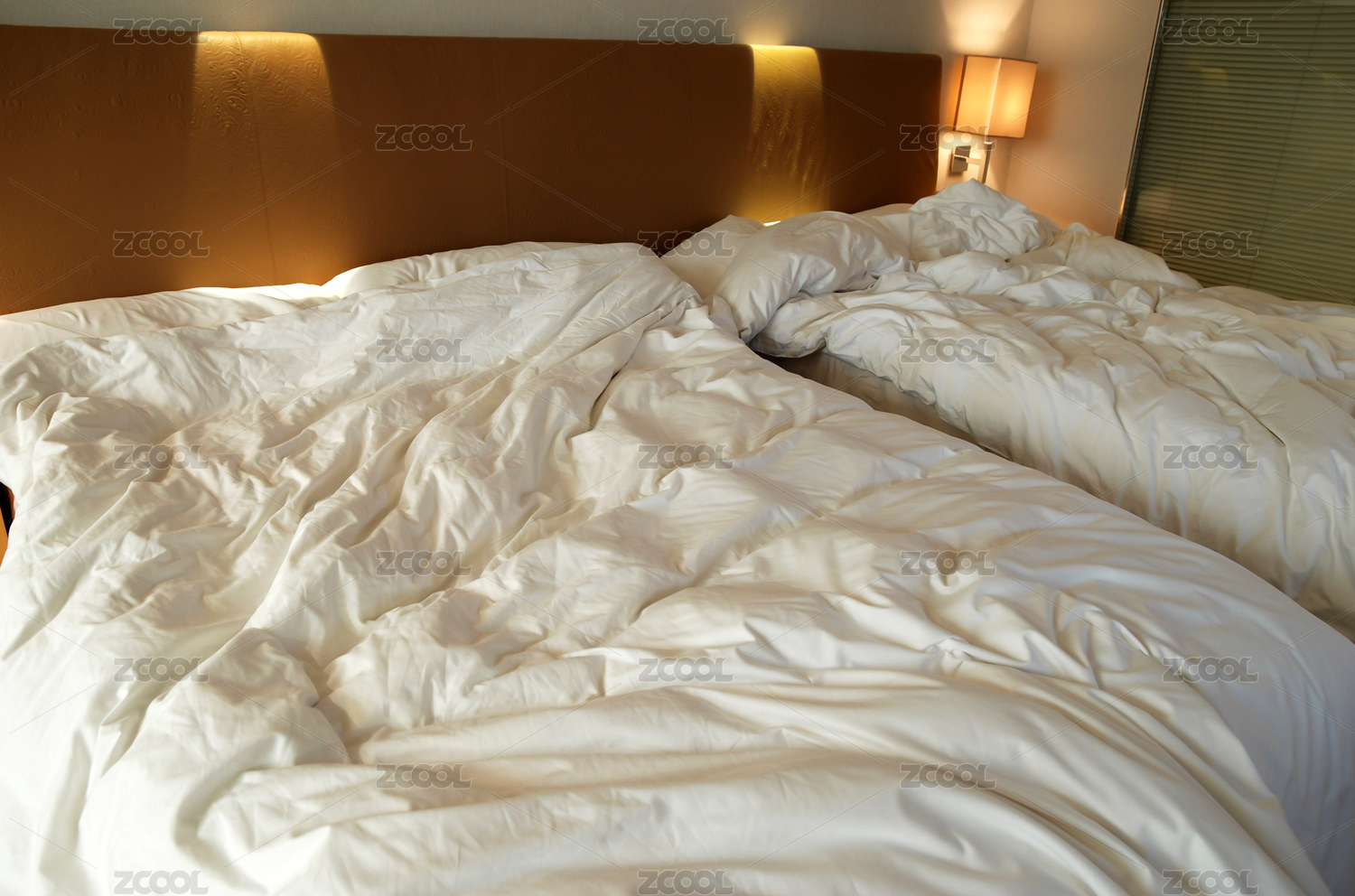 未整理的酒店床铺