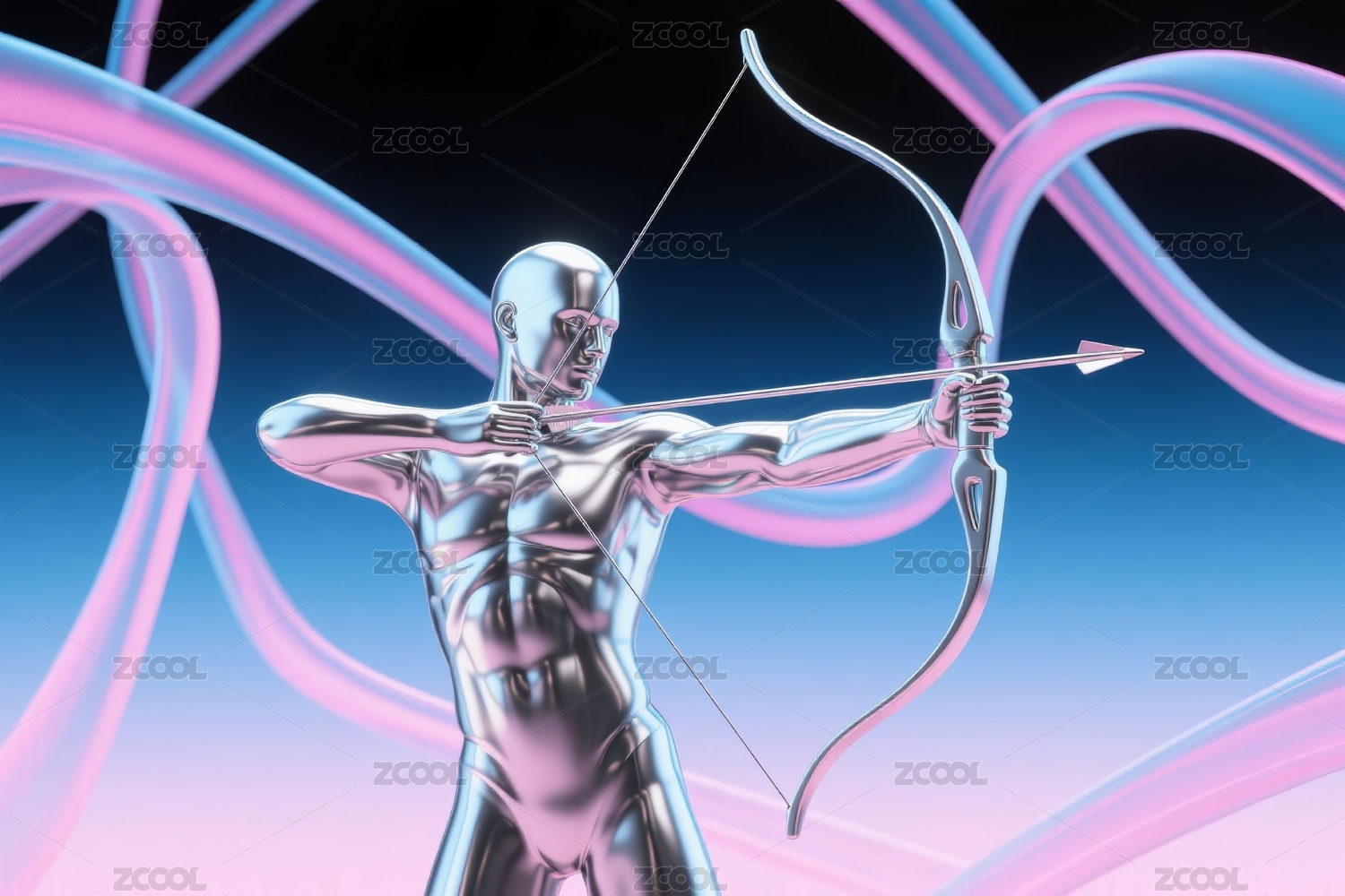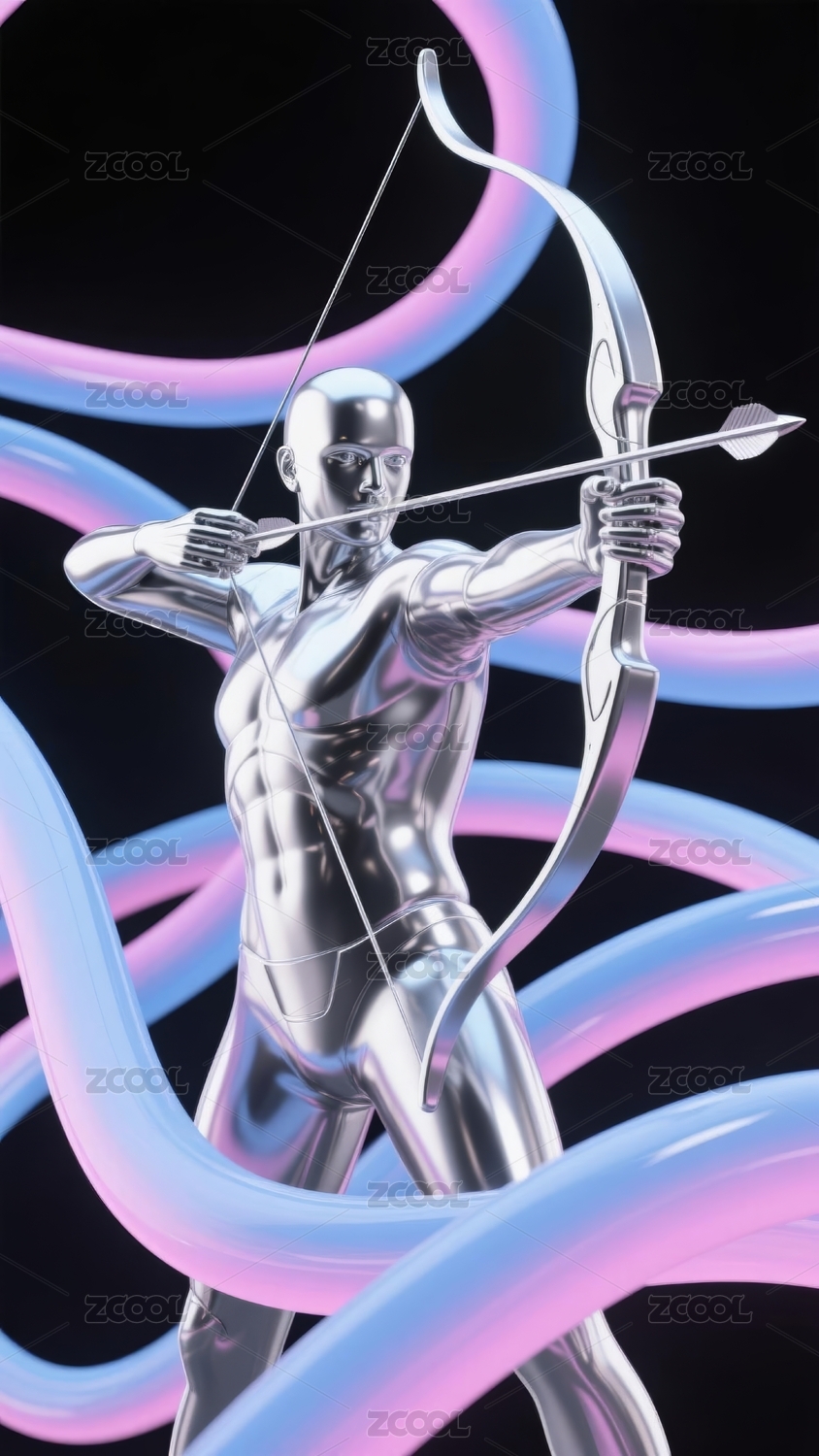 射手雕像金属感艺术展示场景