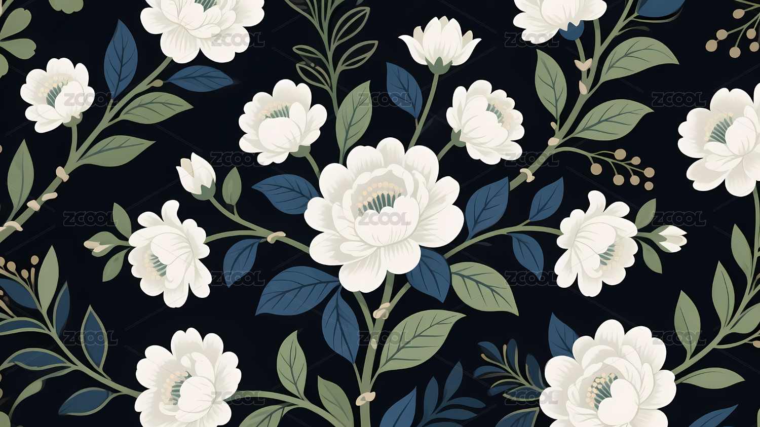 自然,白色,装饰,艺术,花朵,叶子,清新,植物,深绿,浅绿