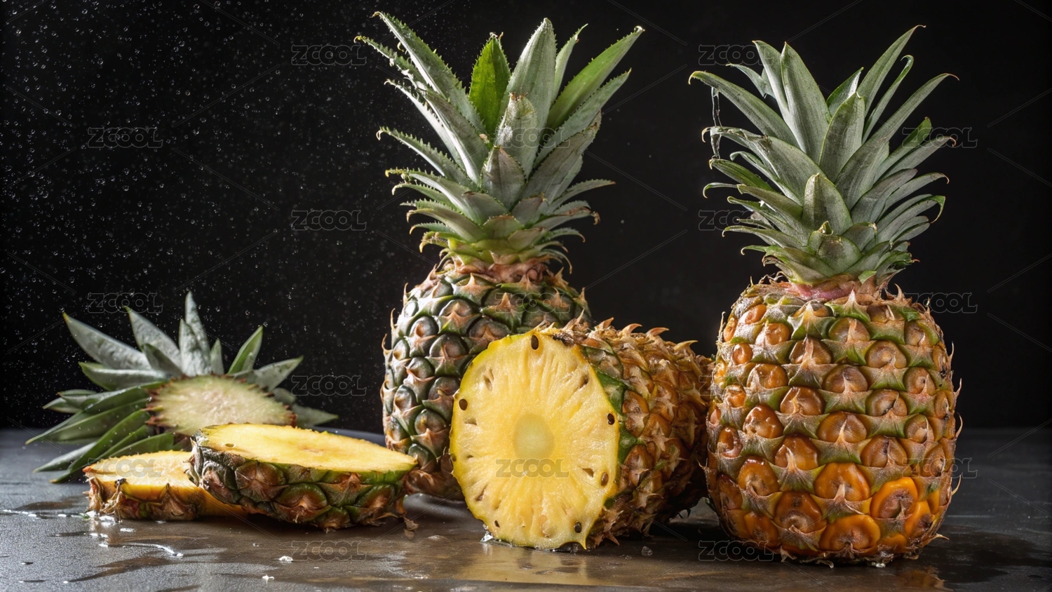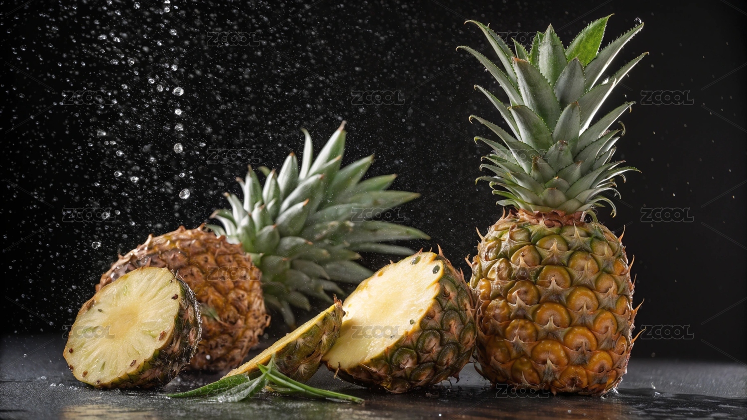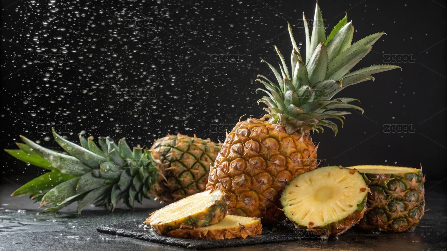 菠萝,水果,切片,食物,新鲜,雨中,果肉,表皮,汁水,色泽