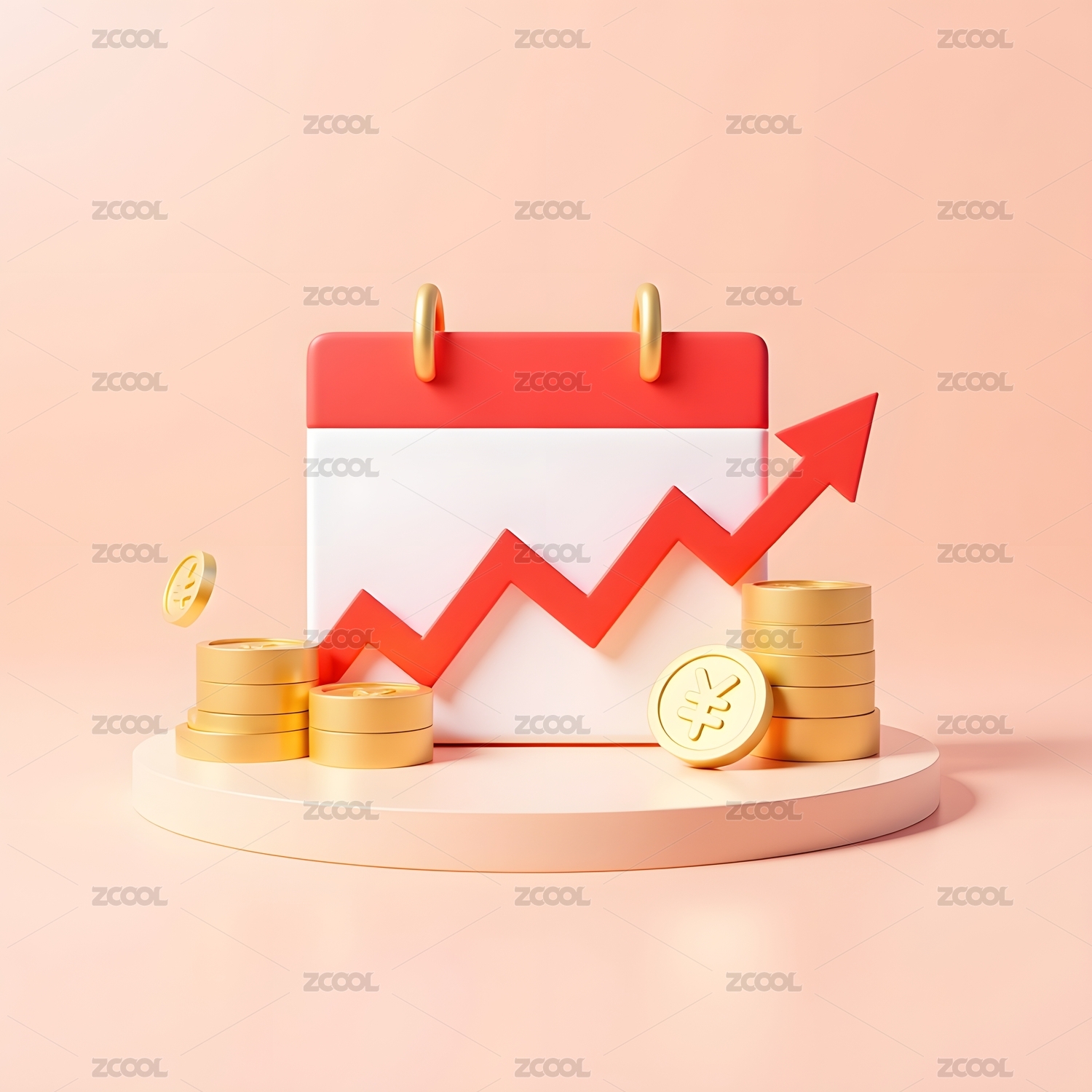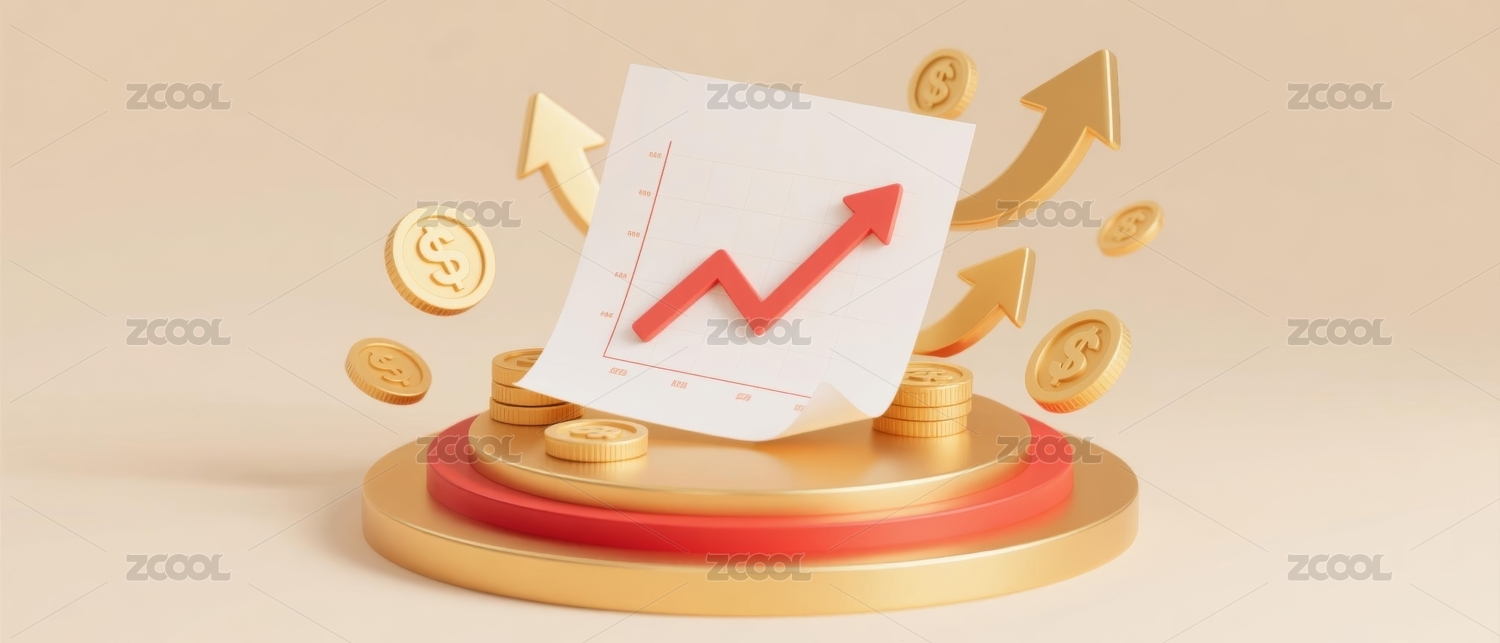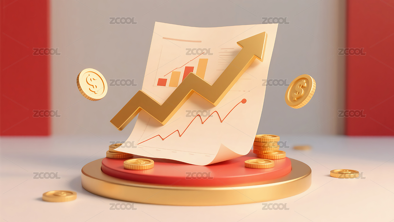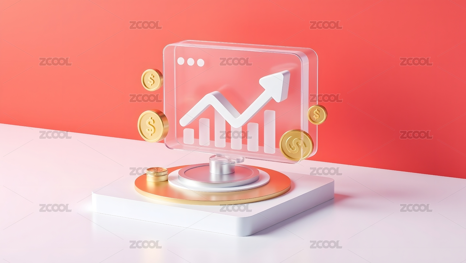 金融,图标,箭头,柱状图,金币,展台,金色,红色,上升,上涨