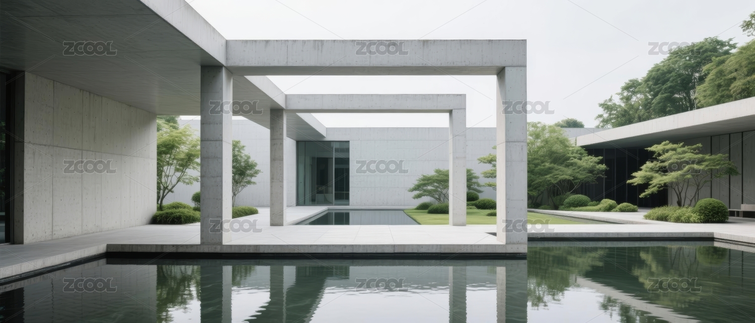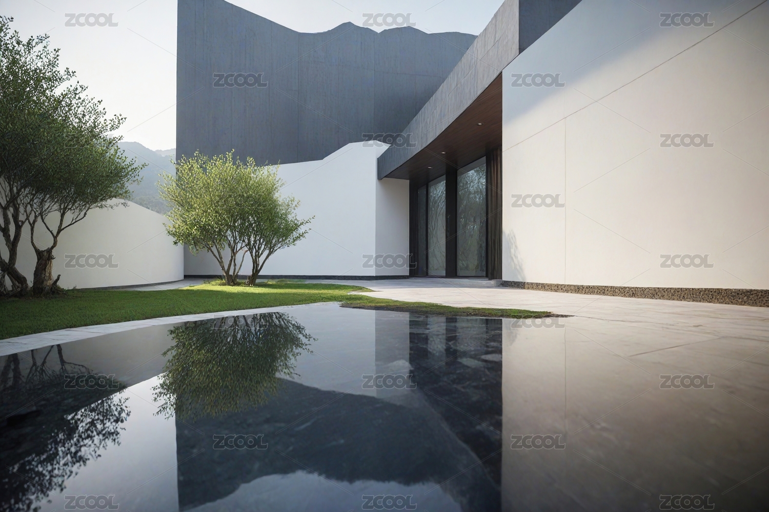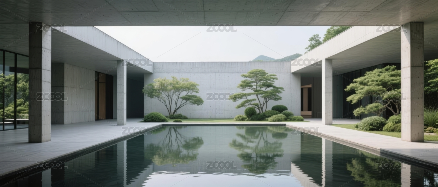 现代建筑水景庭院极简设计