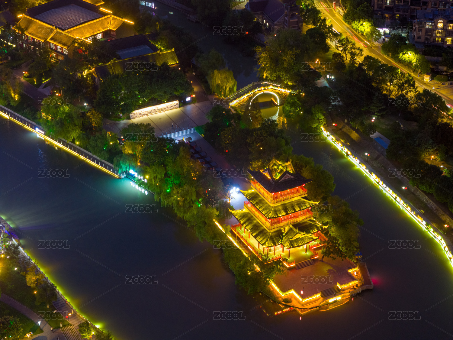 杭州,香积寺,夜景,航拍,灯光,寺庙,佛教,宗教,城市,都市