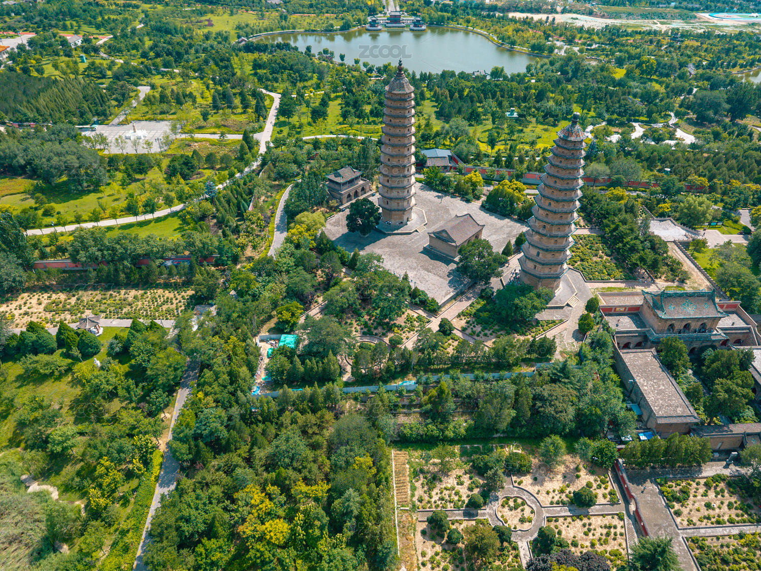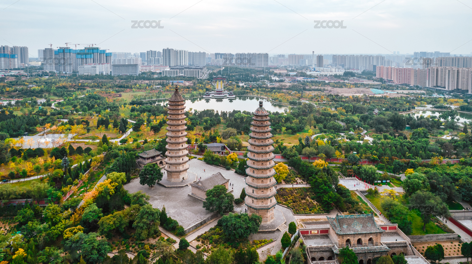 航拍,中国,山西,太原,双塔,公园,湖泊,历史,沧桑,城市