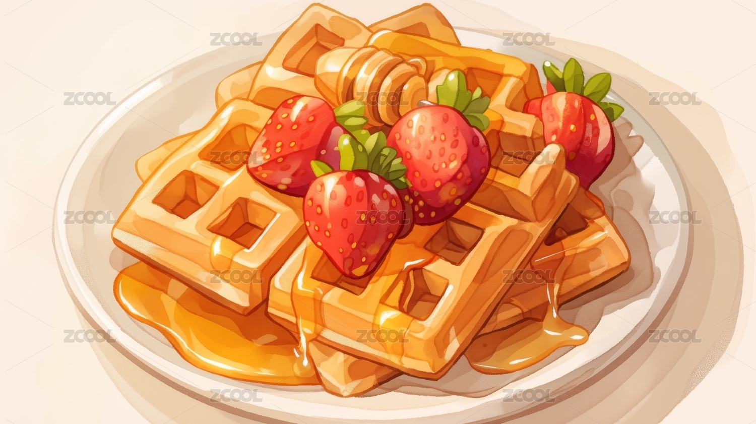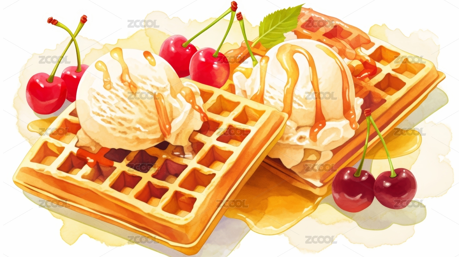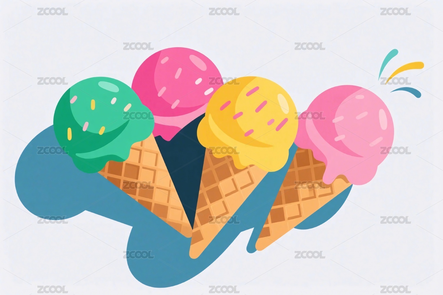 桌面盘中碗中冰激凌球火炬冰激淋插画绘画
