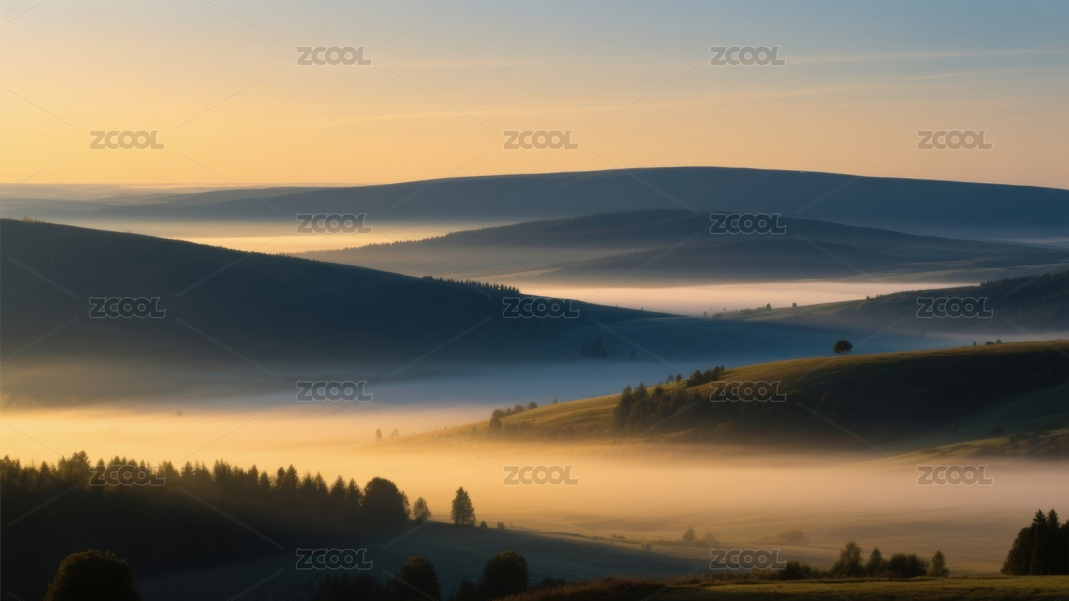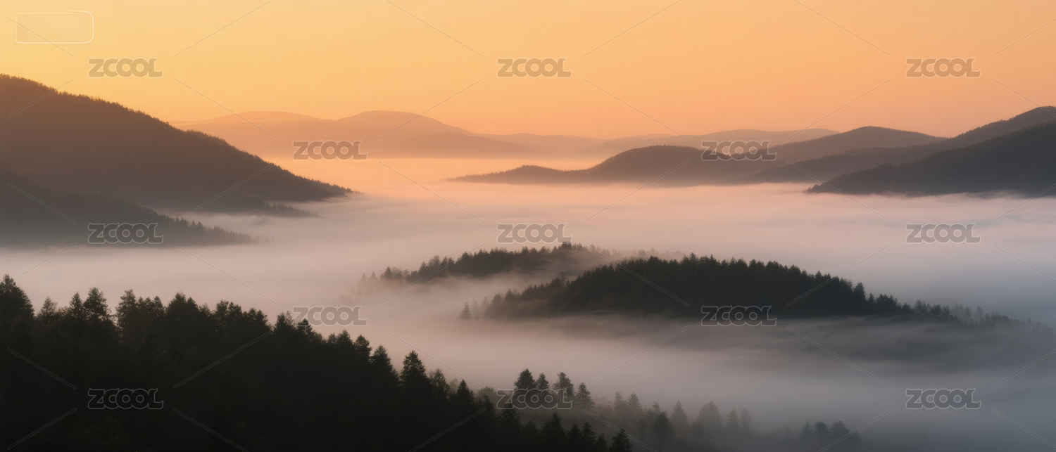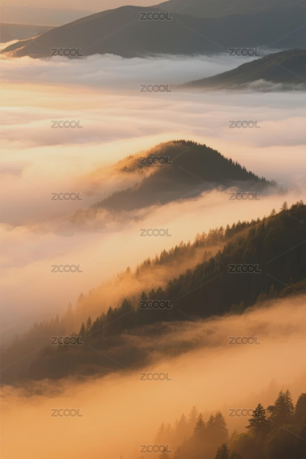 云海,山峦,日出,雾气,山峰,森林,自然风光,唯美,宁静,壮丽