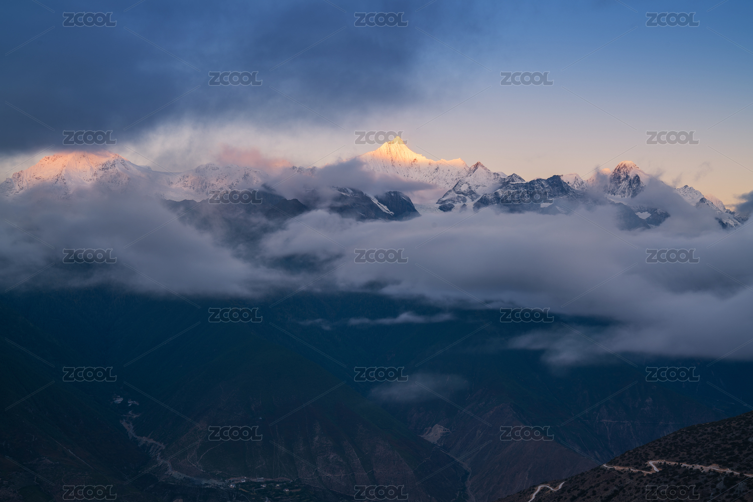 中国四川省甘孜居里寺垭口观贡嘎雅拉雪山风