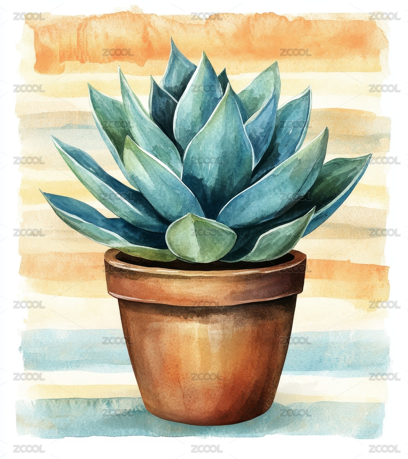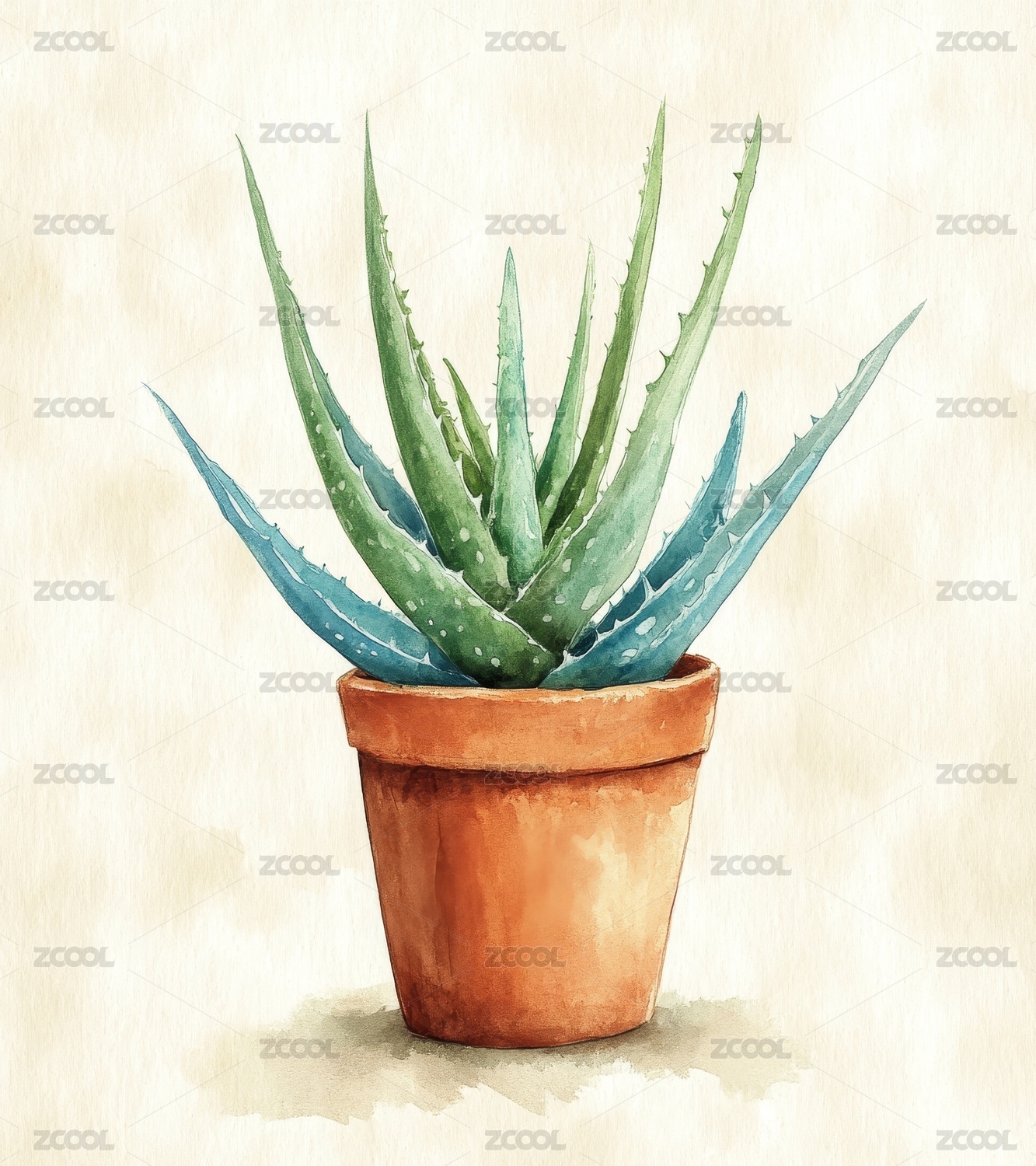 水彩,芦荟,盆栽,插画,植物,绿色,陶土,花盆,简约,自然