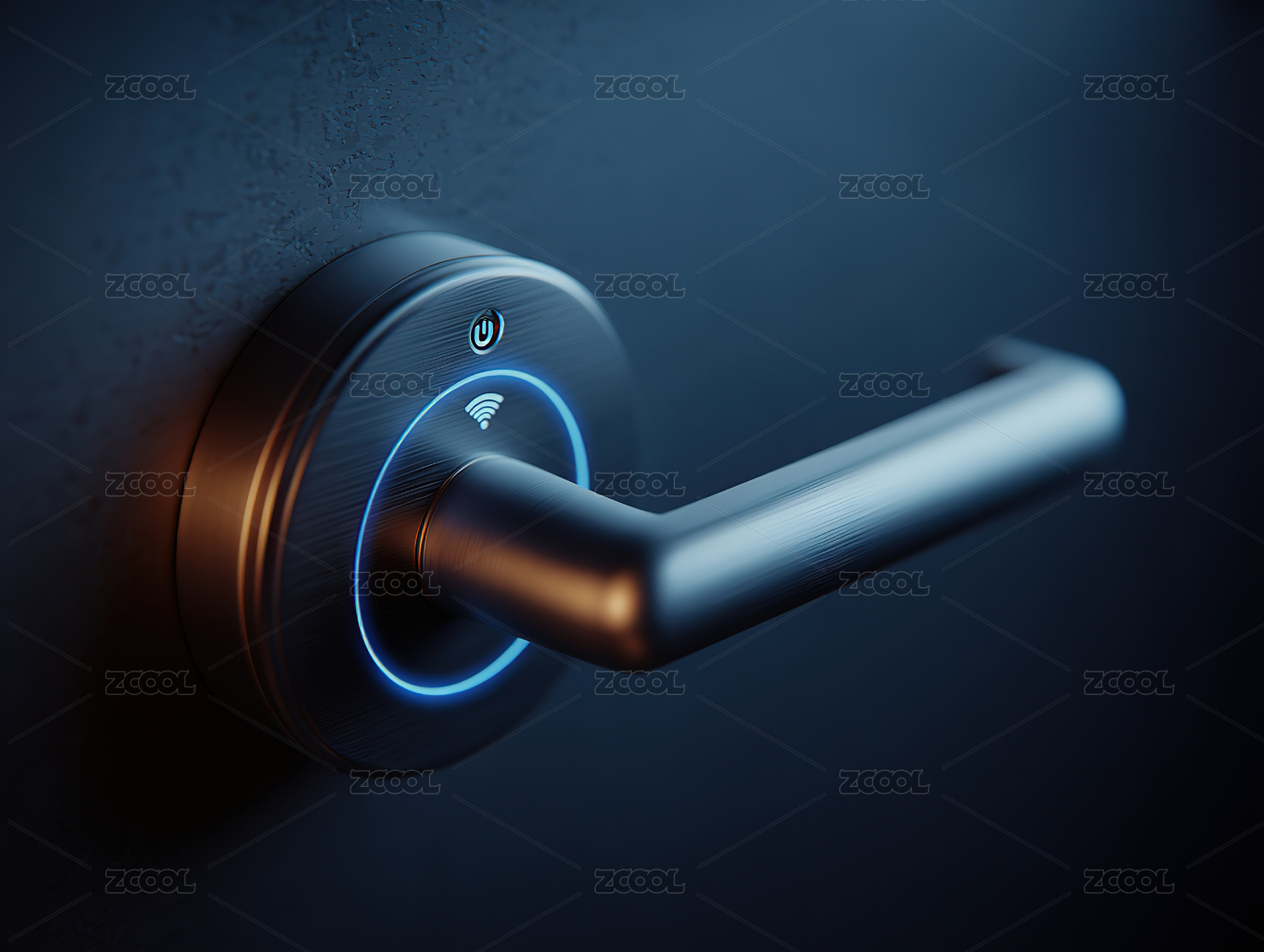 智能门锁特写蓝色背光设计
