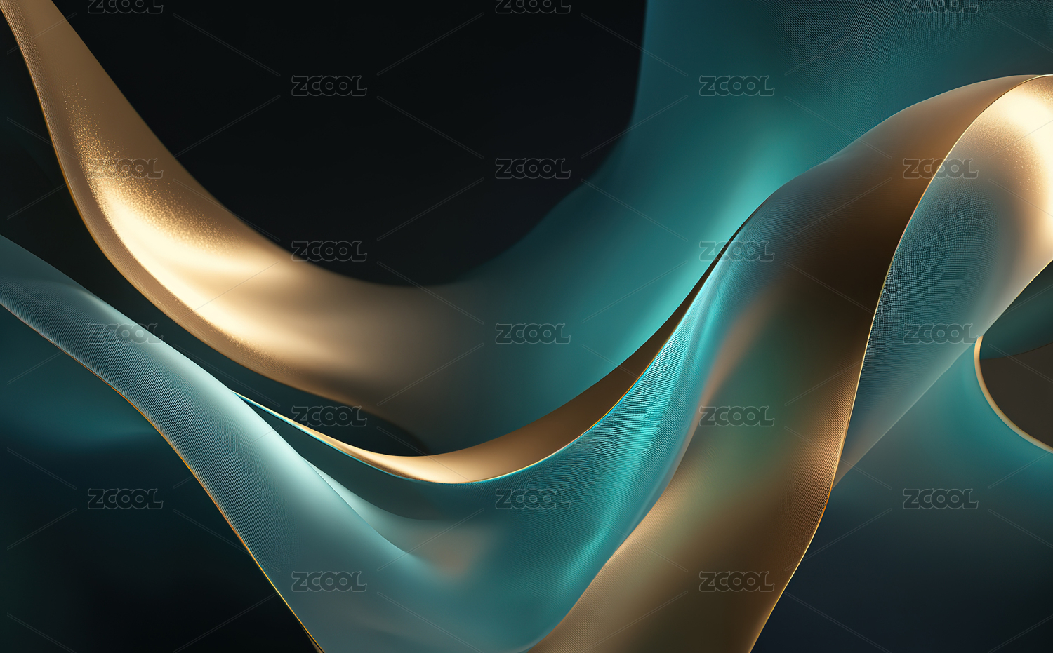 蓝色与金色交织的抽象流线艺术