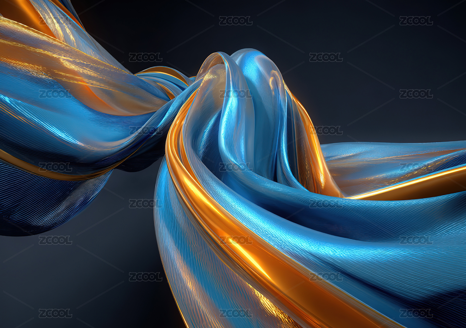 蓝橙交织流动曲线深色背景