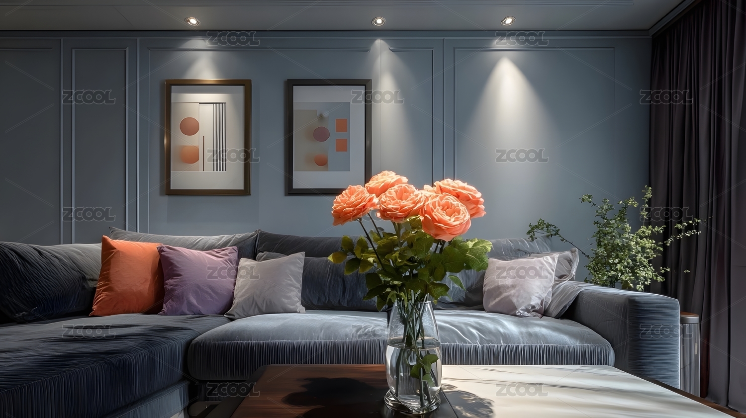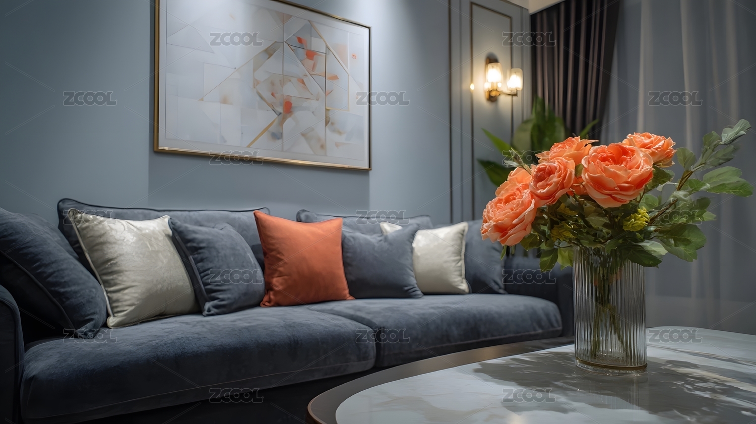 室内,沙发,抱枕,家具,蓝色,装饰,灯,客厅,装修,空间