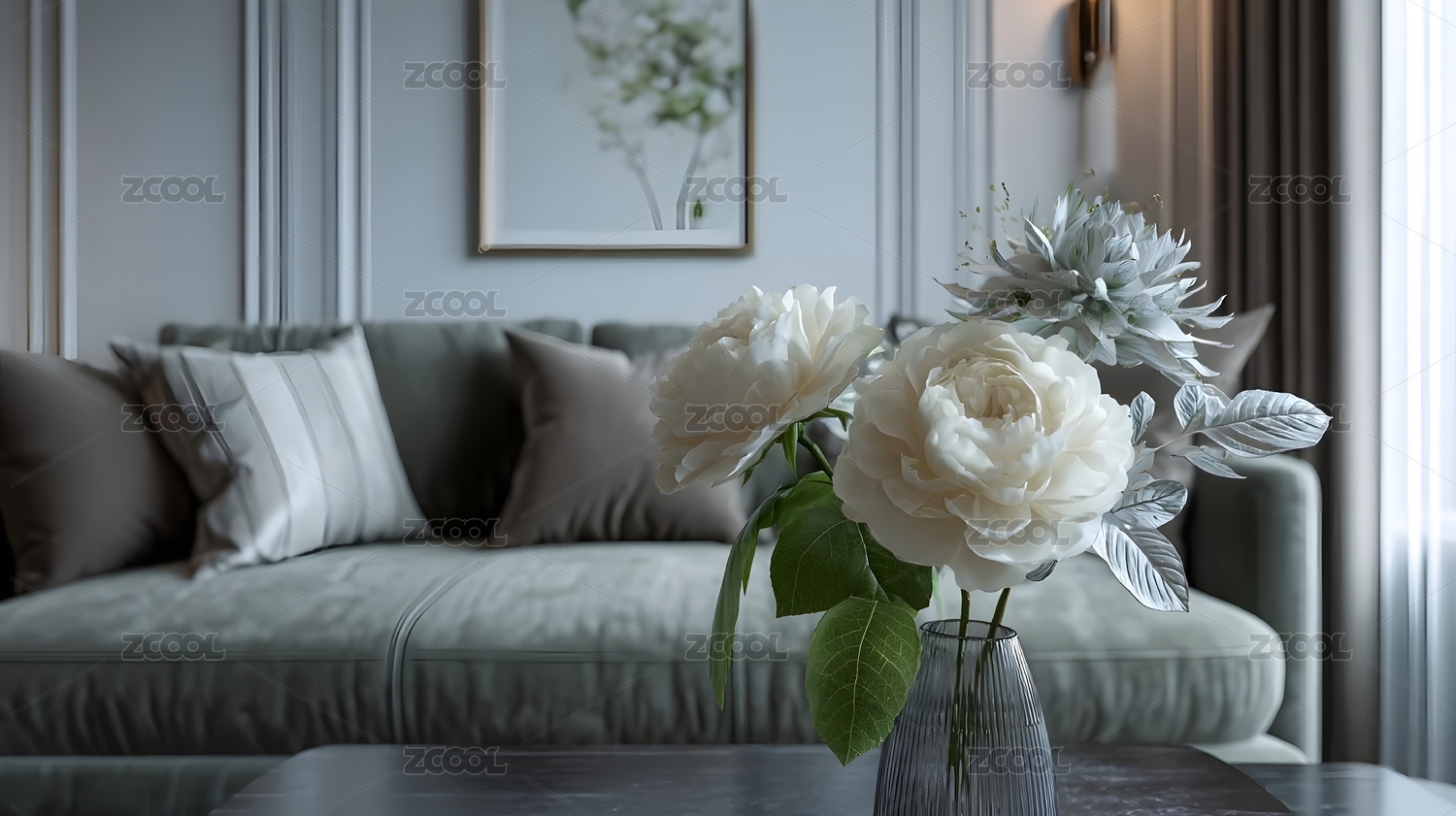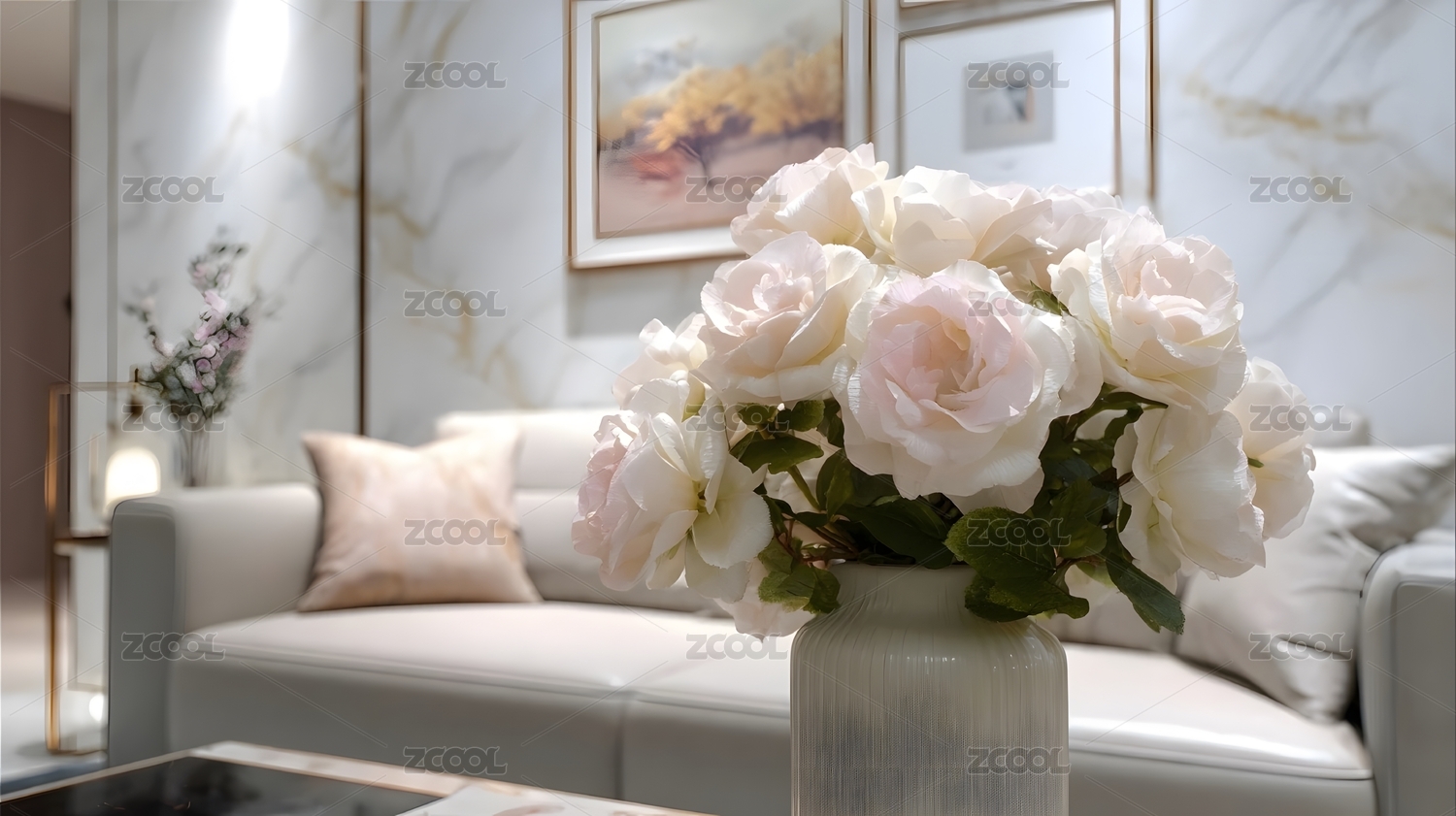 女性轻奢白色明亮极简客厅起居室装饰装修