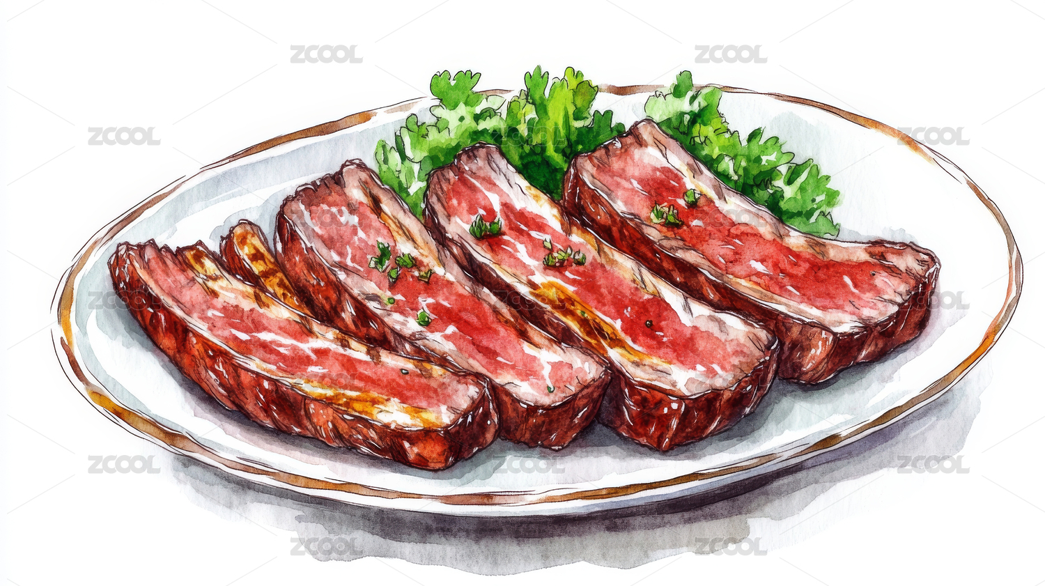 水彩风格火腿叉烧