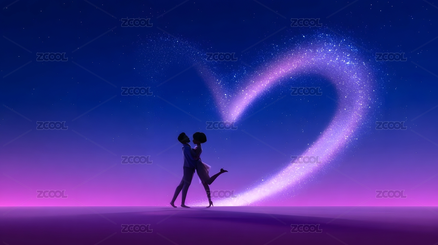情人节,浪漫,人物,星空,剪影,夜晚,紫色,蓝色,云彩,地平线