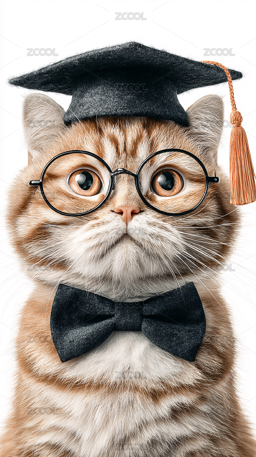 猫,学士帽,眼镜,领结,宠物,萌宠,可爱,毕业,学位,教育