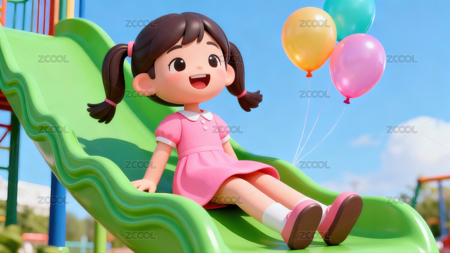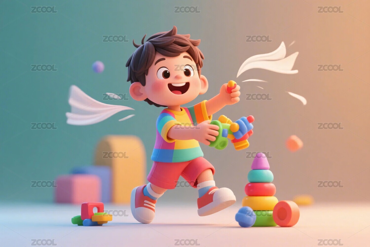 卡通,人物,快乐,儿童,3D,背景,女孩,开心,室内,幼儿园
