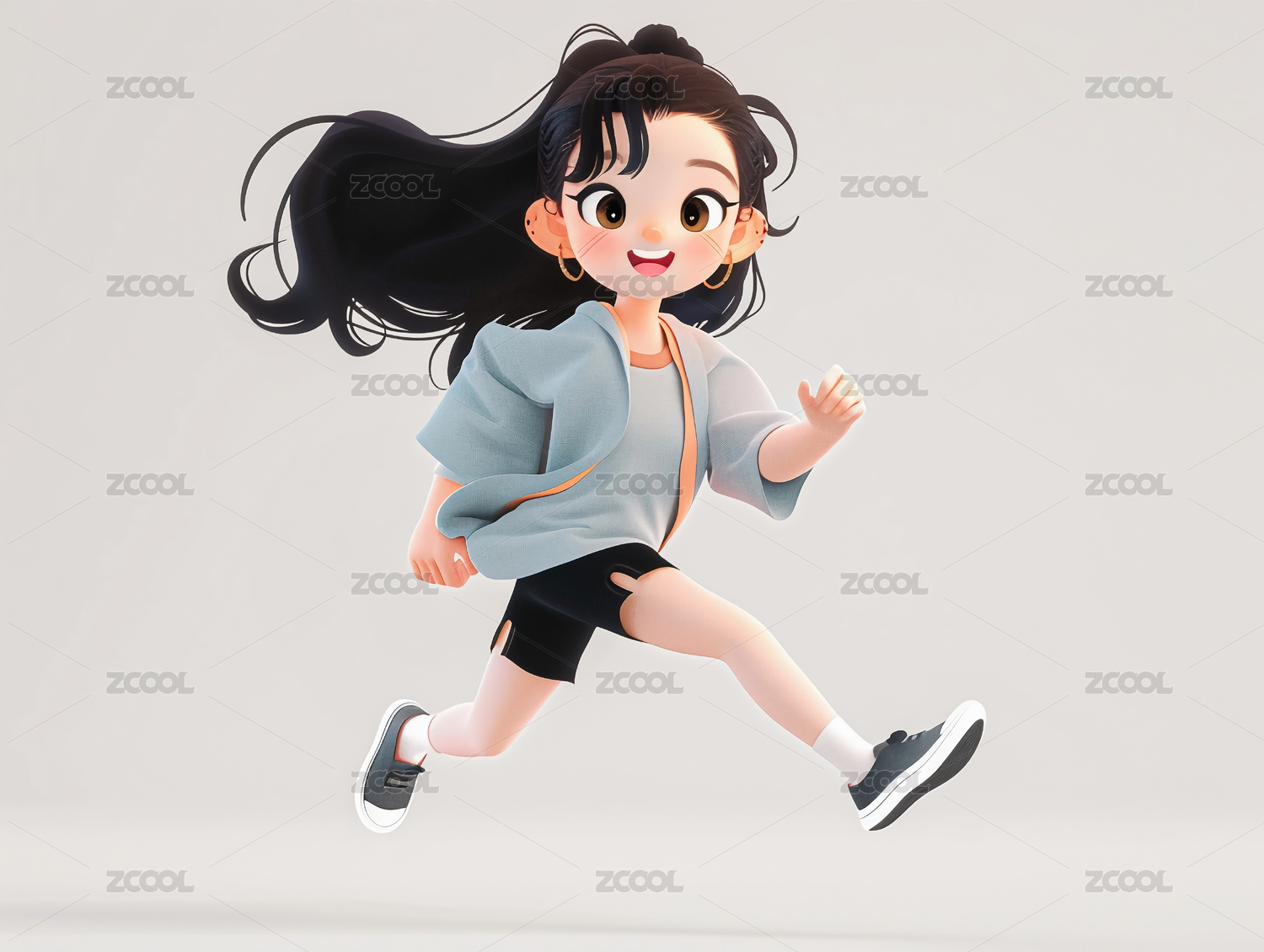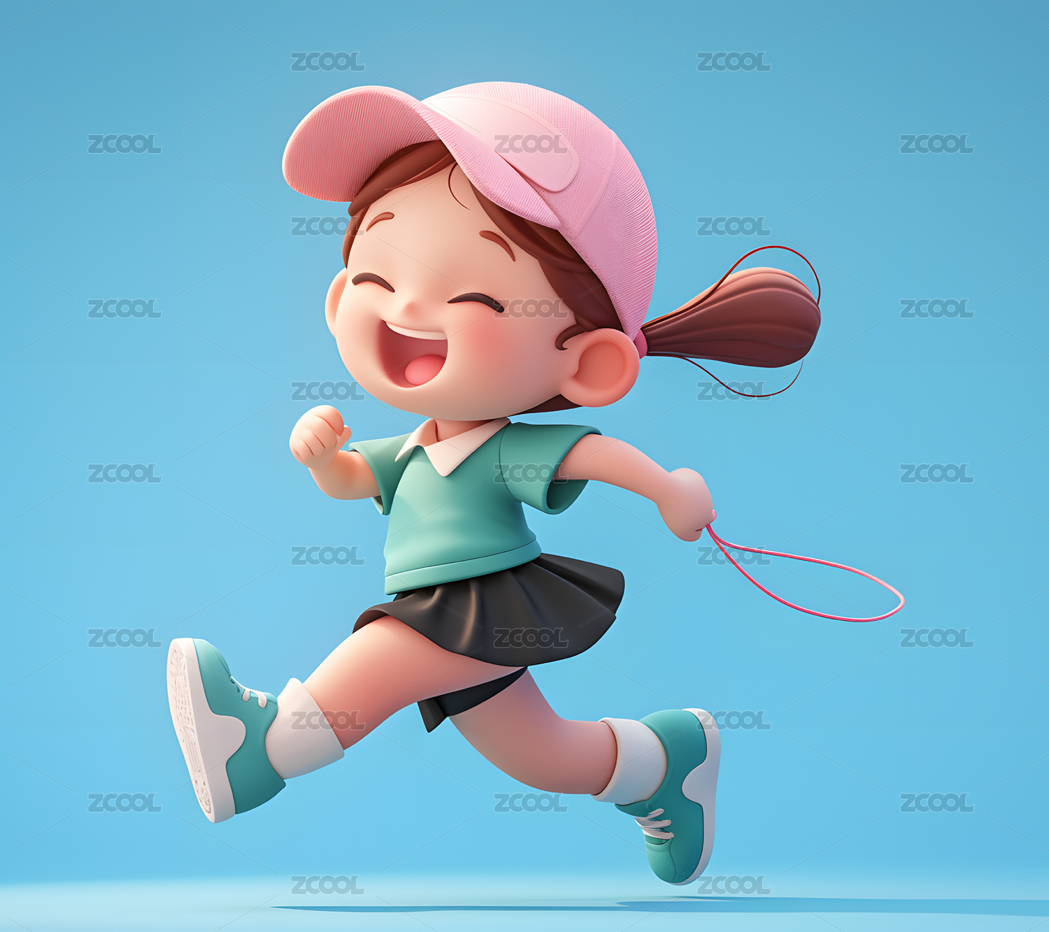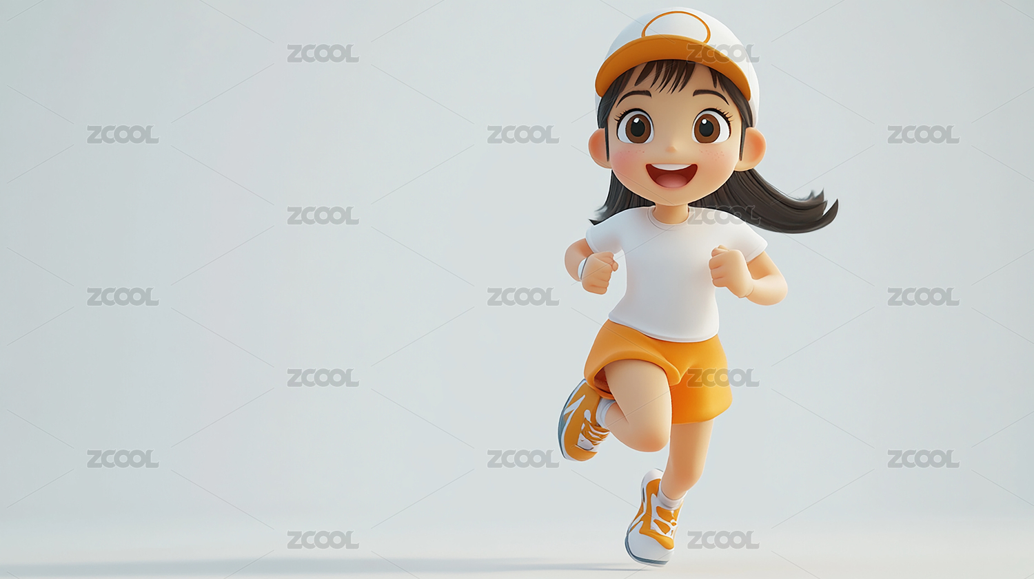 卡通,人物,可爱,橙色,快乐,3D,白色,运动,女孩,跑步