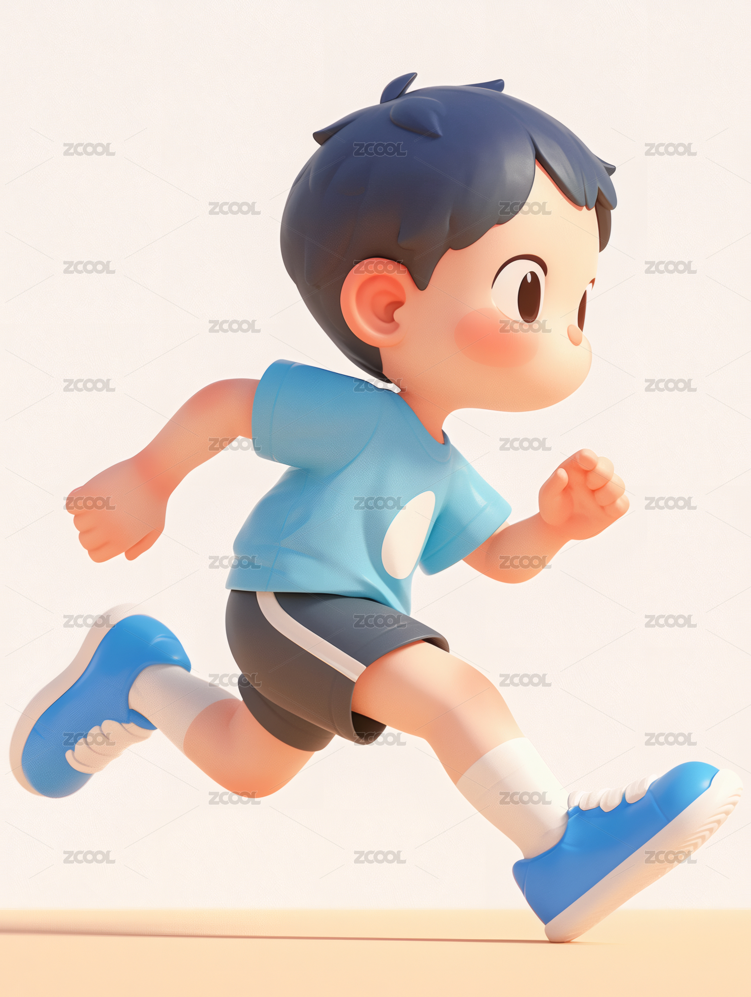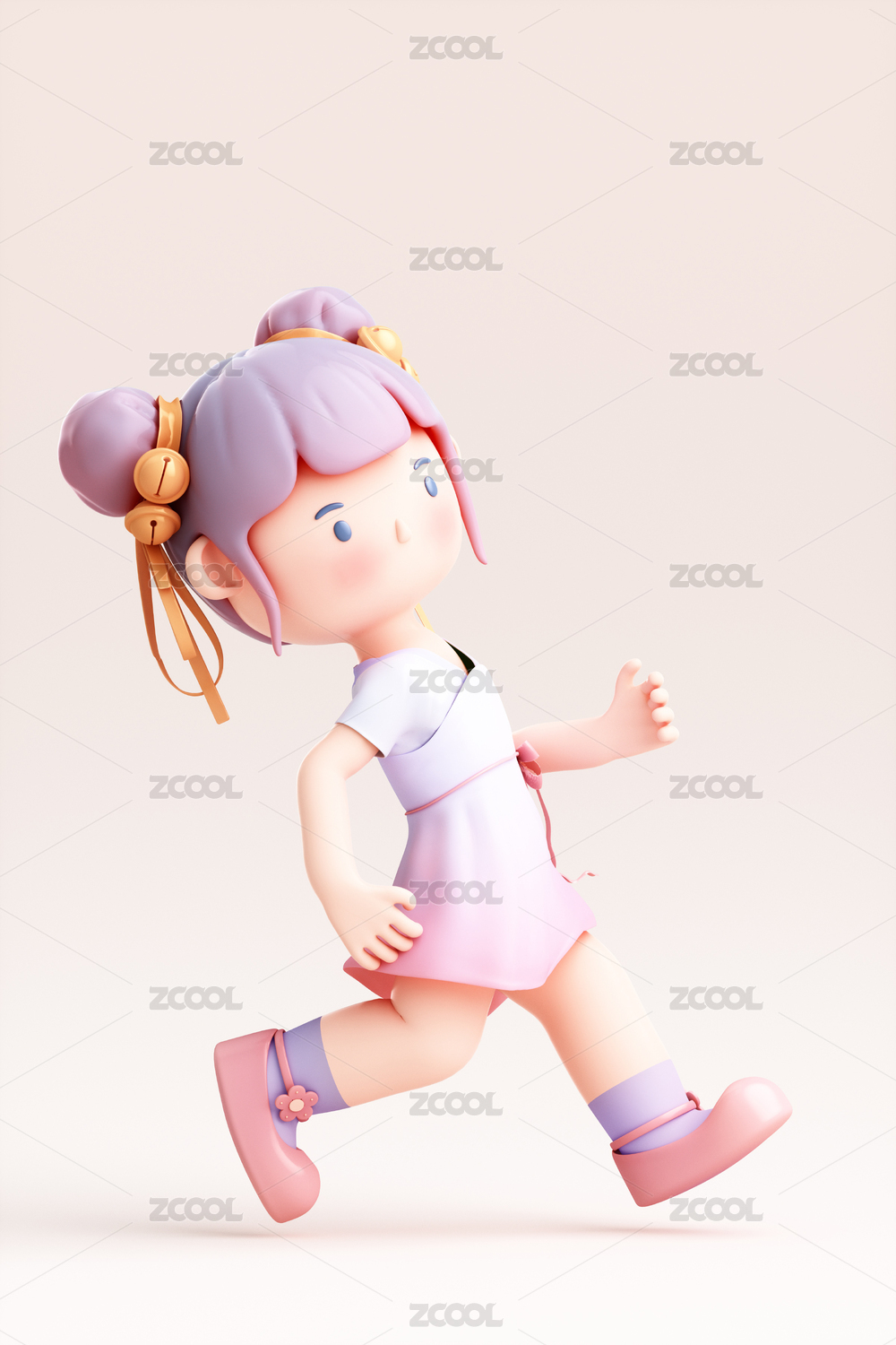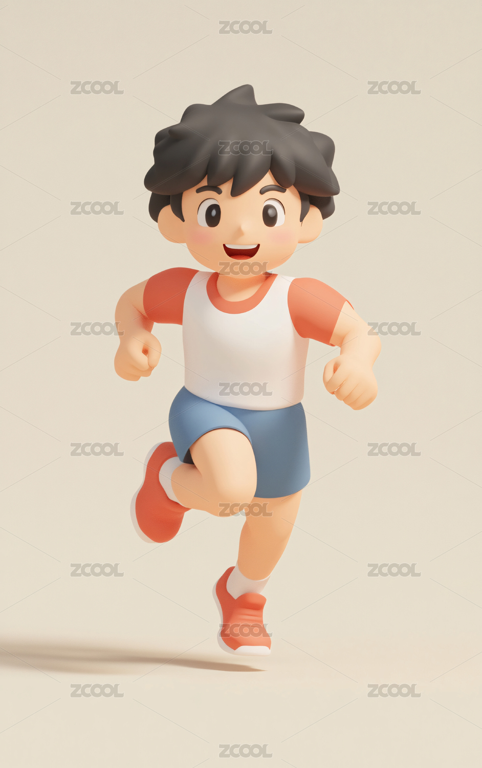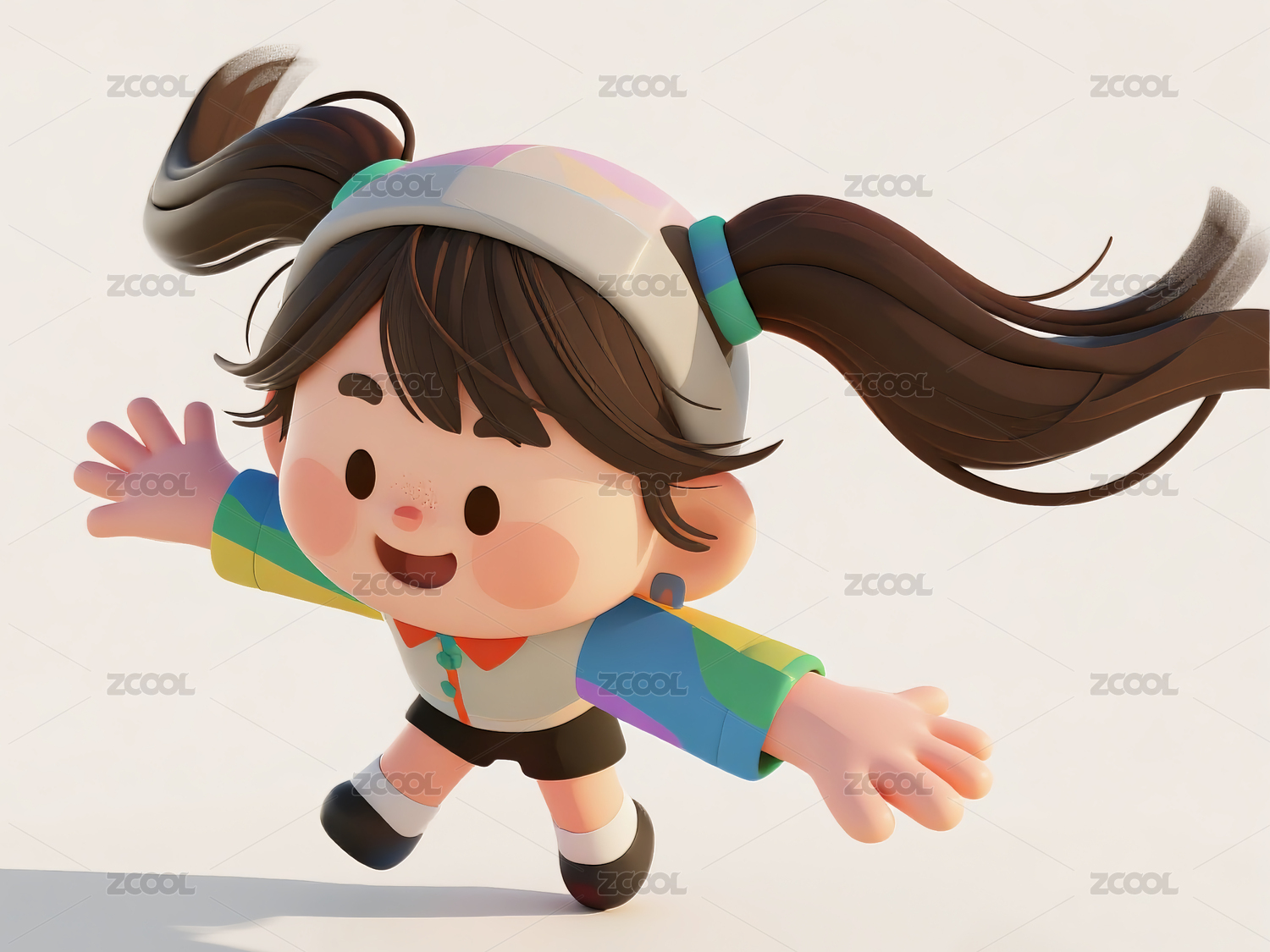 卡通,人物,可爱,橙色,快乐,3D,白色,运动,女孩,跑步