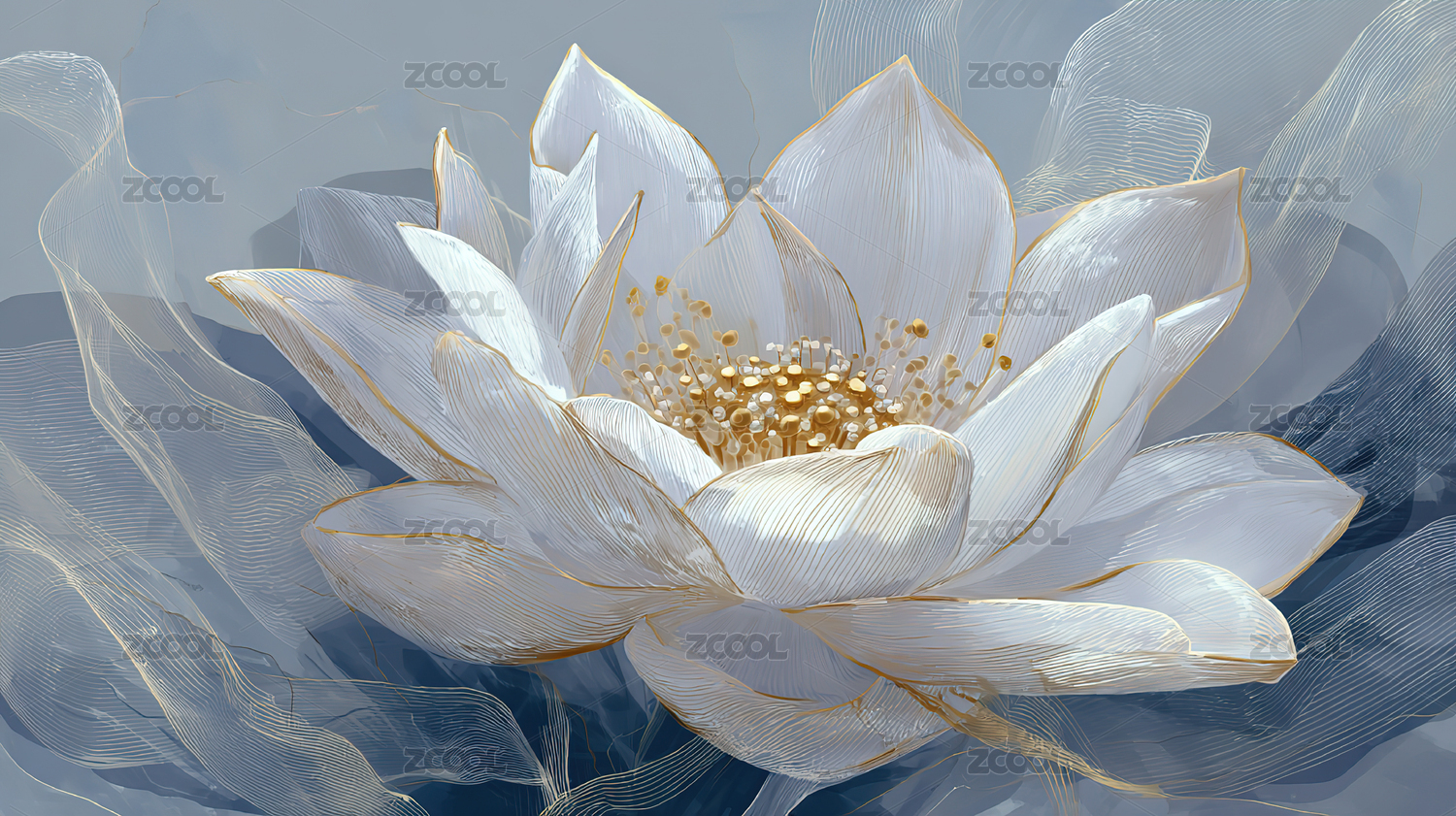 花朵花瓣绽放科技背景抽象数字艺术插画