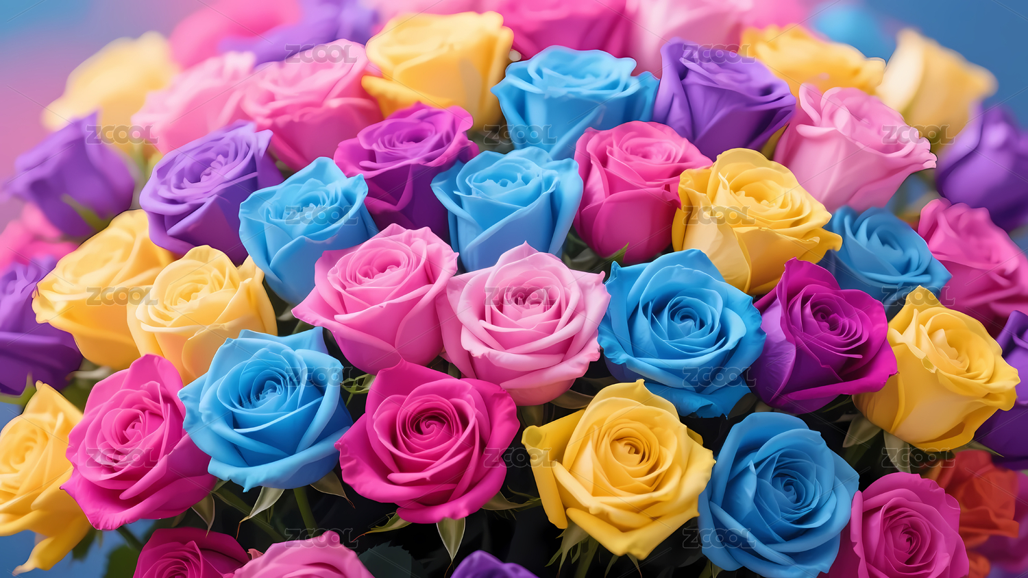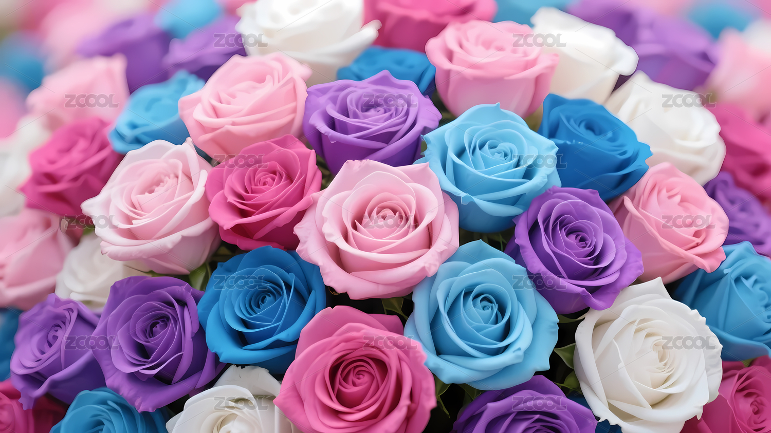 鲜艳,紫色,蓝色,粉色,黄色,柔和,玫瑰,花束,美丽,多彩