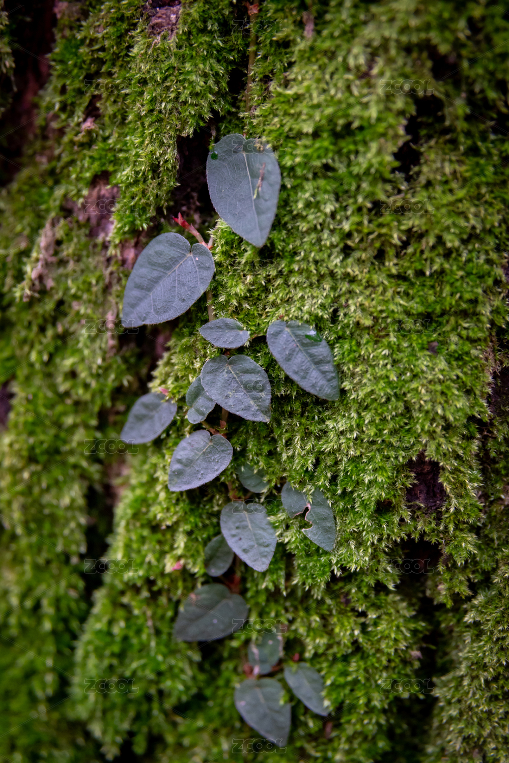 特寫森林中翠綠的蕨類植物,綠色的苔蘚植物