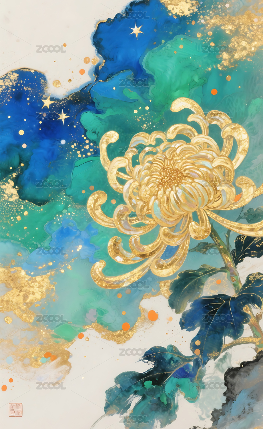 金箔岩彩古风菊花