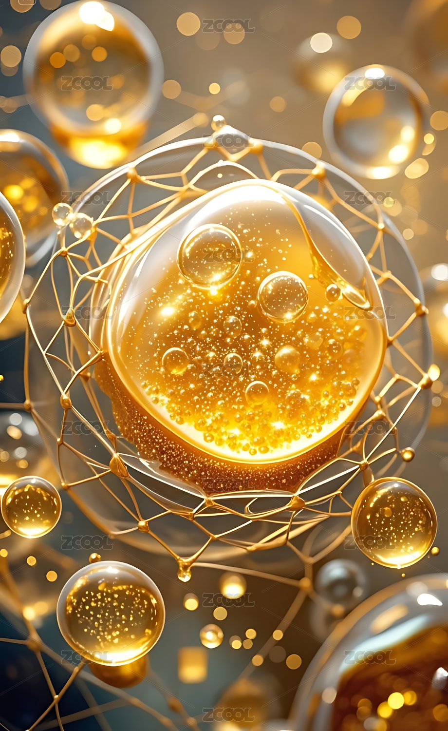 未来,现代,创新,结构,背景,金色,连接,透明,分子,球体