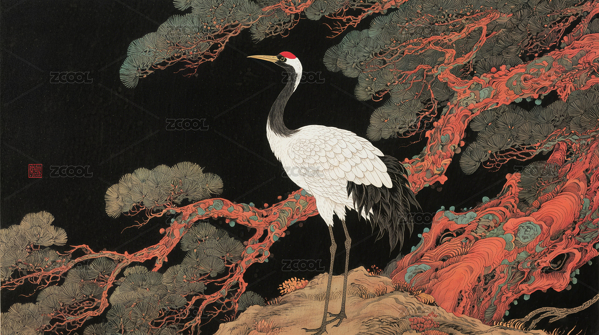 浮世绘动物仙鹤长寿寓意白鹭丹顶鹤