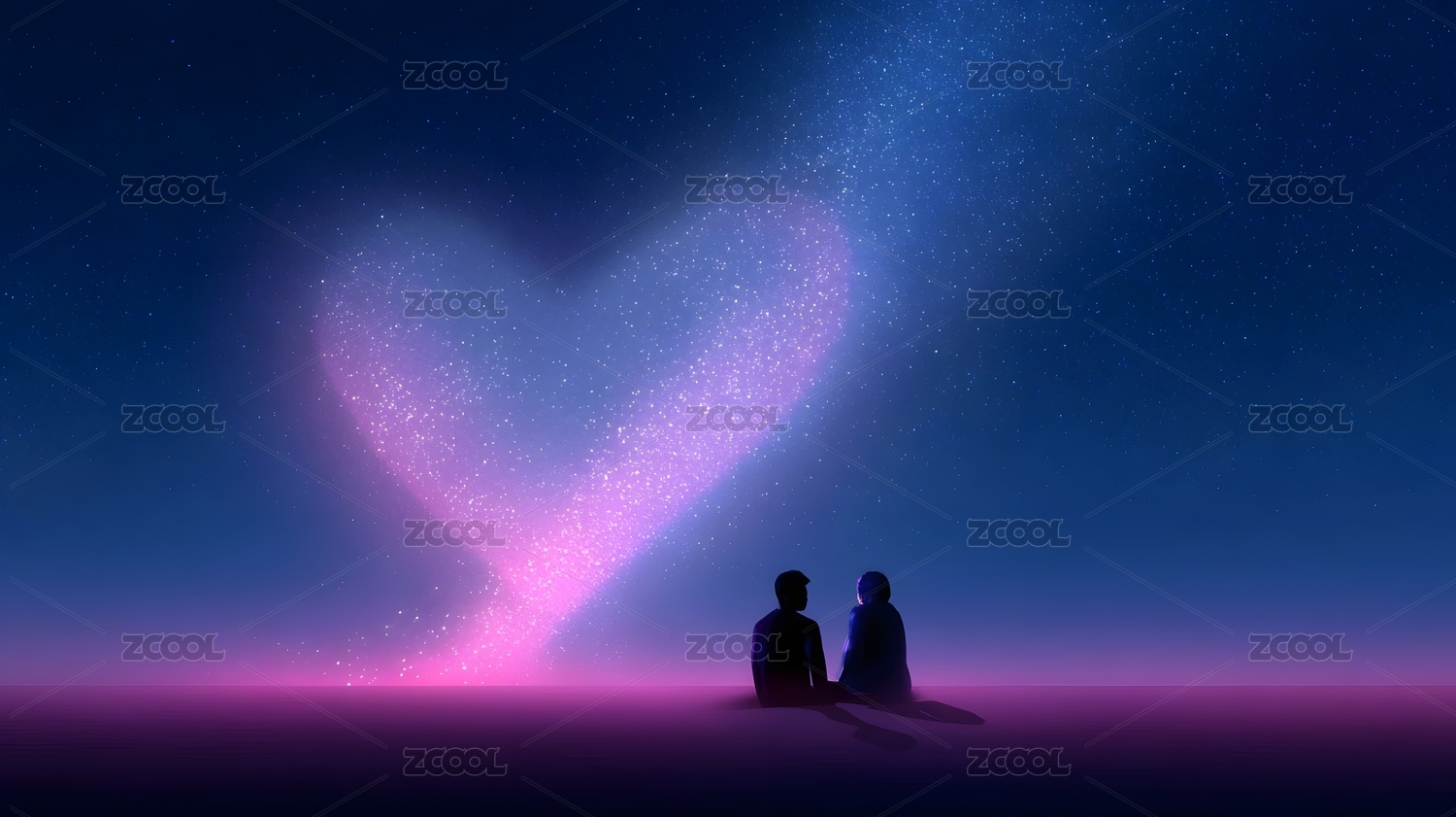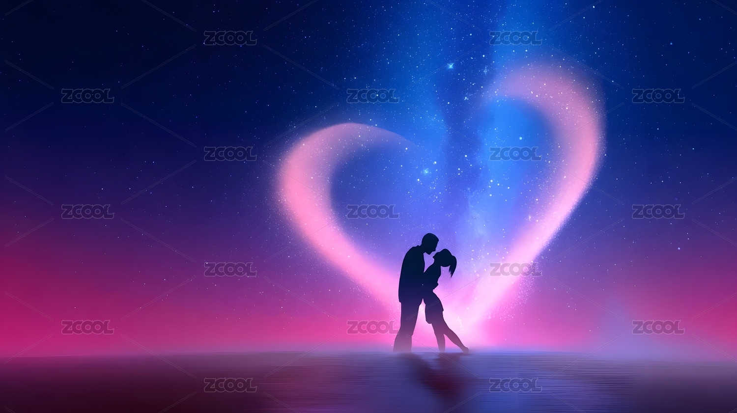 情人节,浪漫,剪影,梦幻,爱心,夜晚,蓝色,牵手,光效,背景