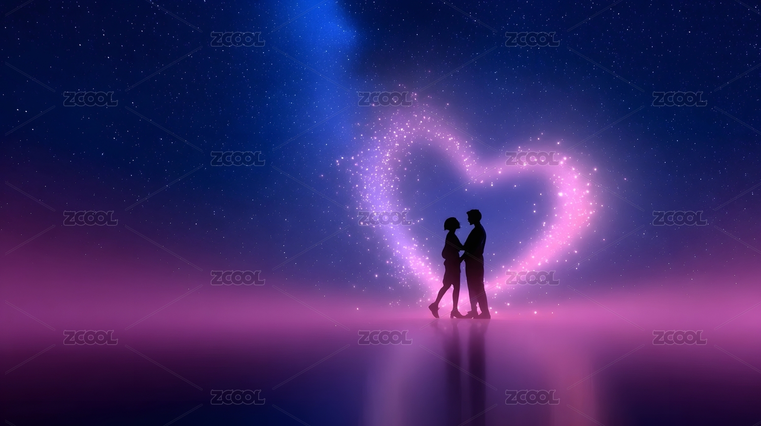 情人节,浪漫,剪影,梦幻,爱心,夜晚,粉色,蓝色,天空,牵手