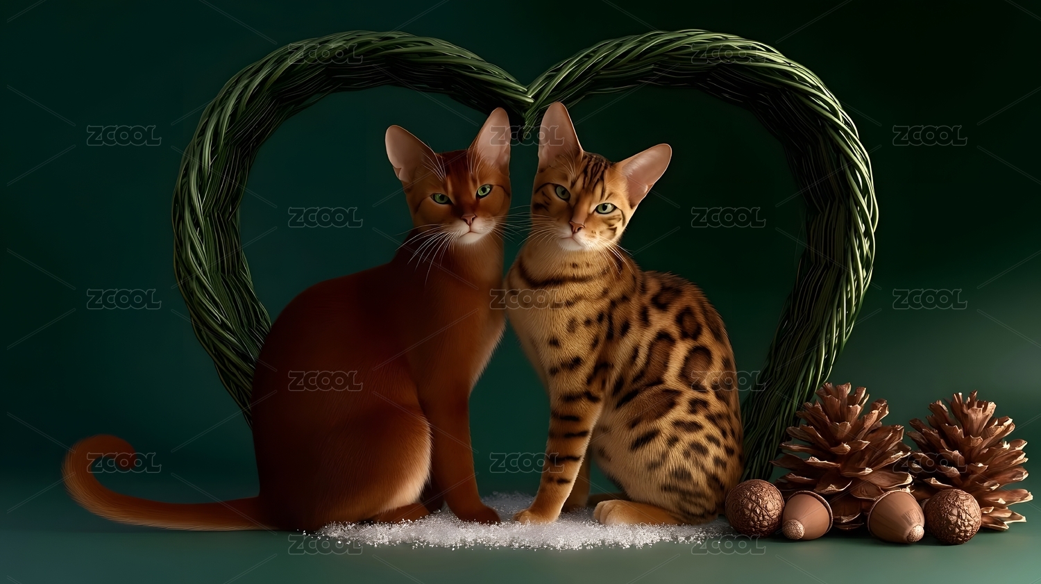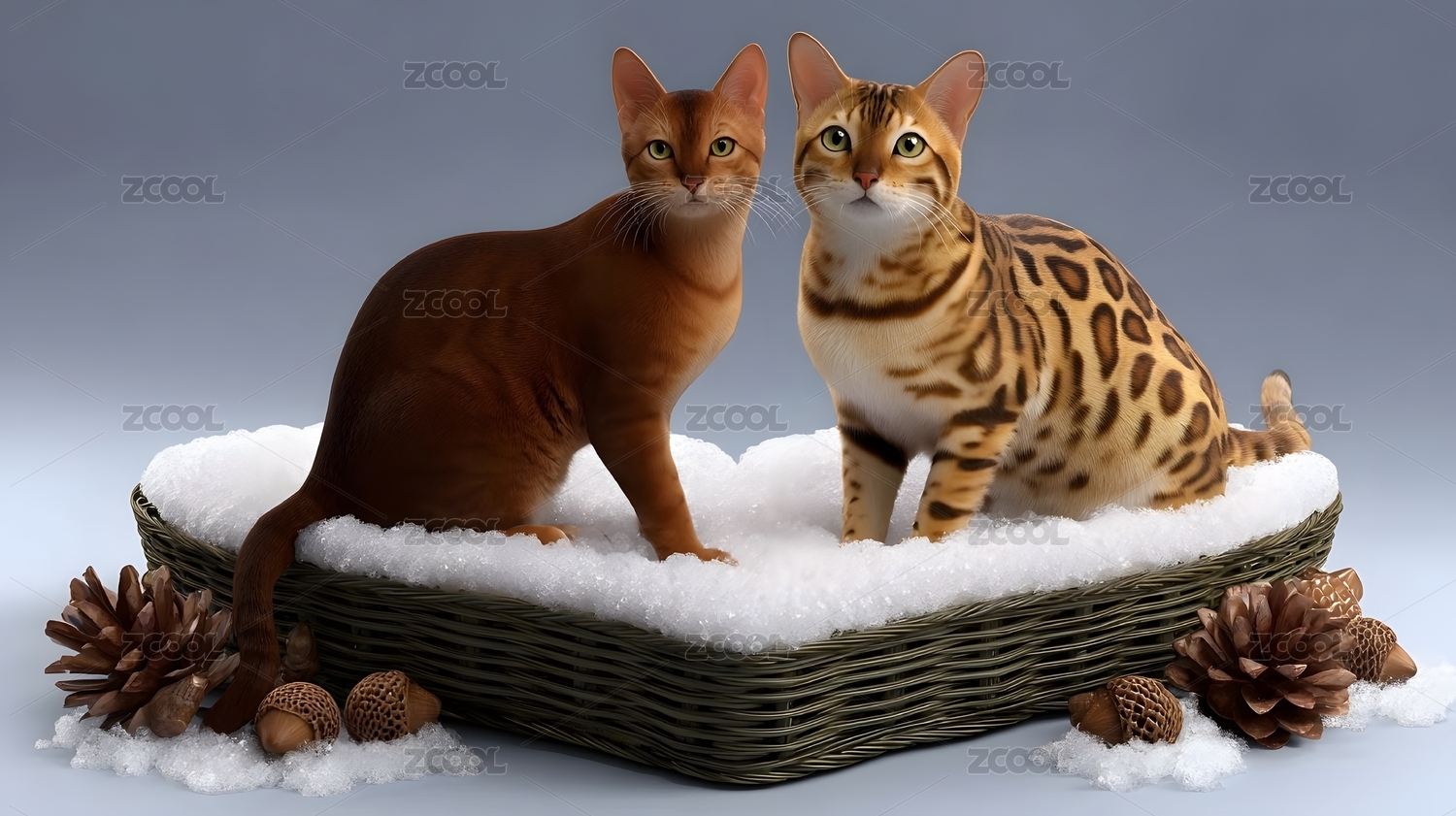 情人节,猫,毛绒,可爱,宠物,装饰,爱心,白色,雪,篮子