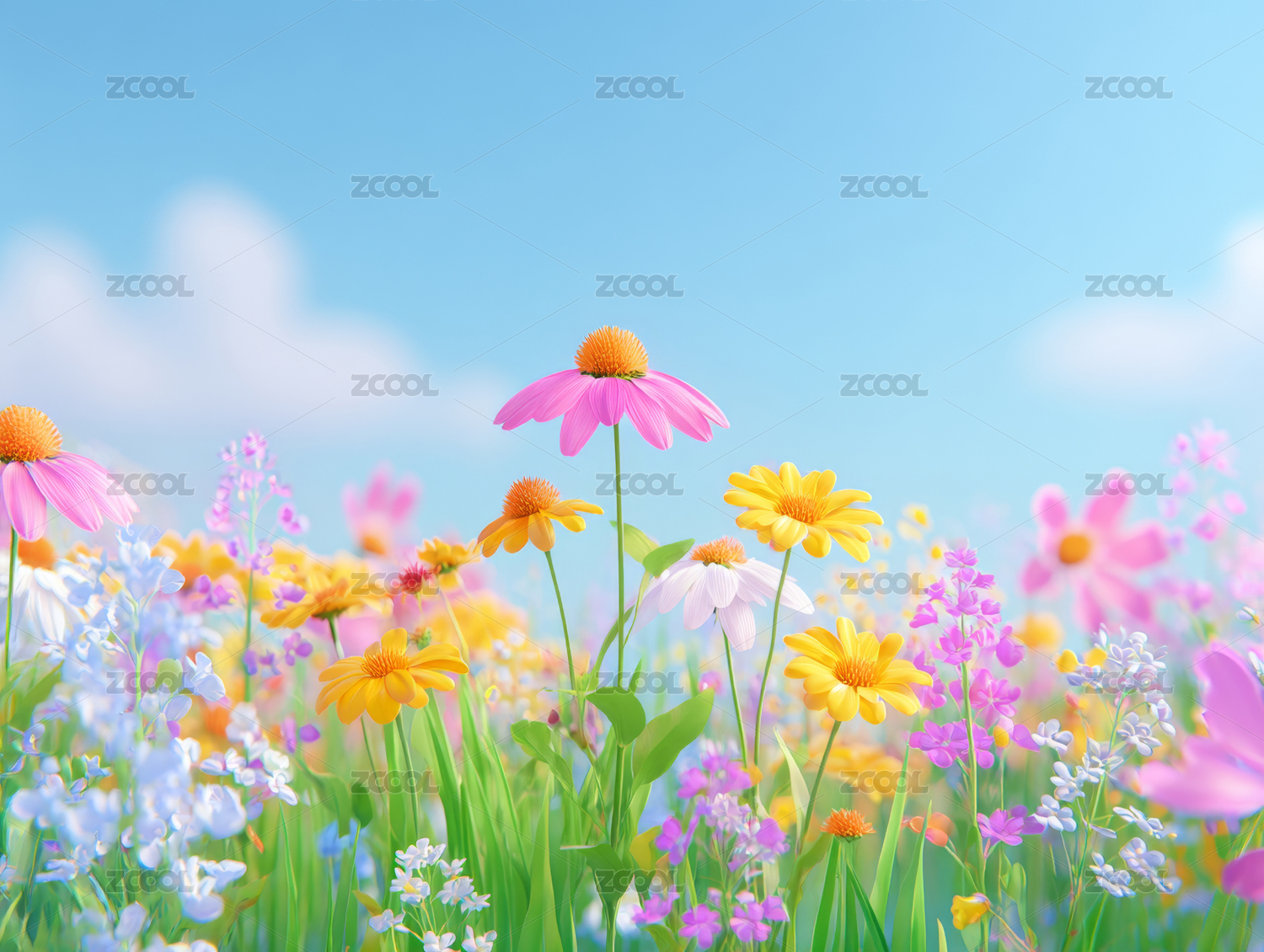 浪漫彩色花园花海花朵卡通插画背景壁纸