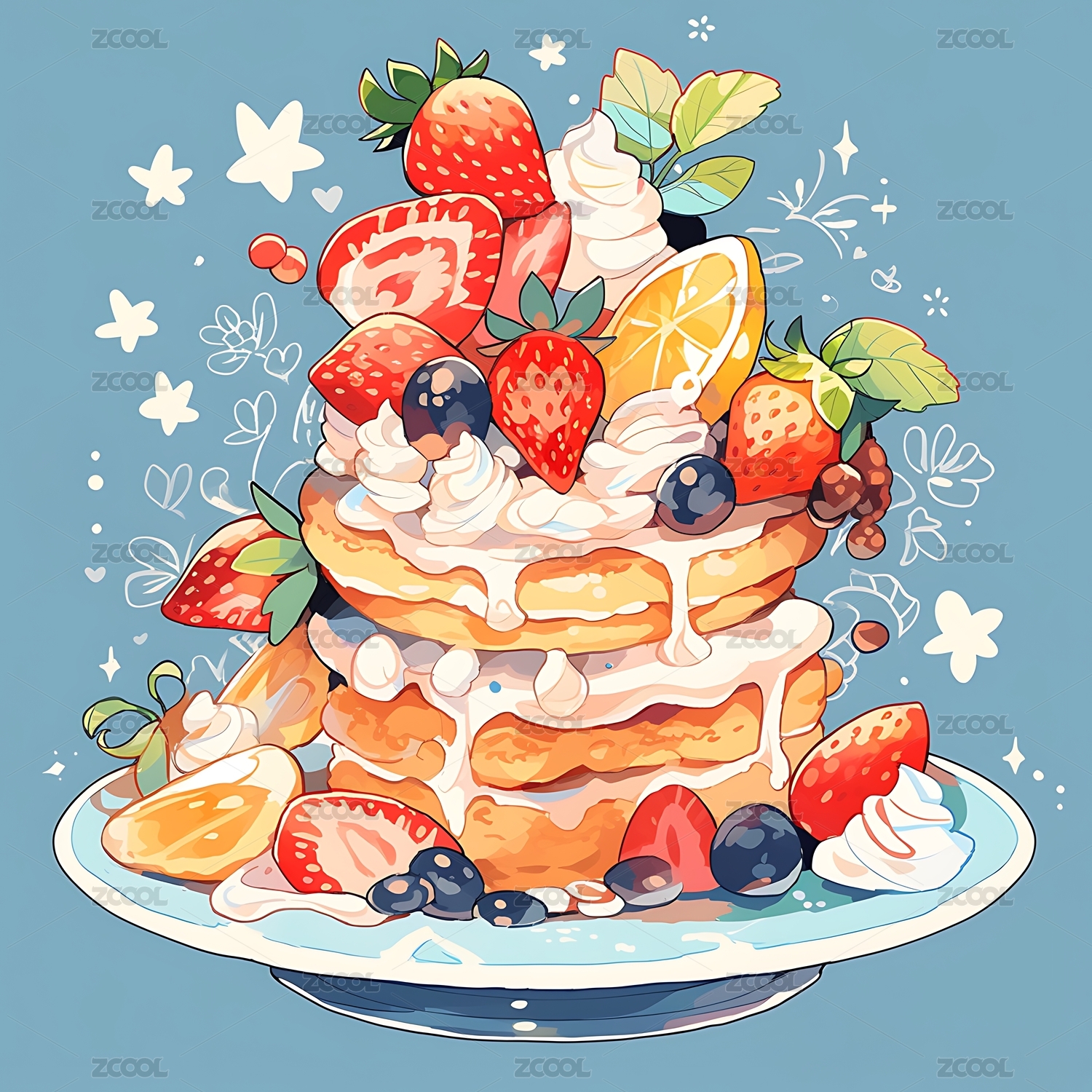 浆果蛋糕甜品下午茶果酱蛋糕水彩手绘