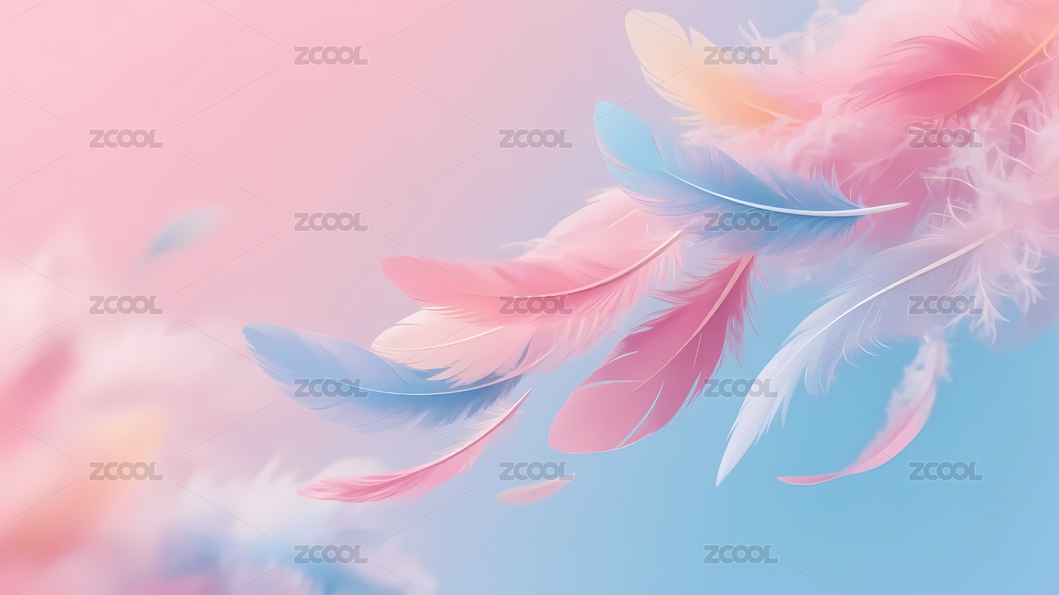 背景,柔和,浅蓝,轻盈,粉色,橙色,羽毛,梦幻,飘落,唯美