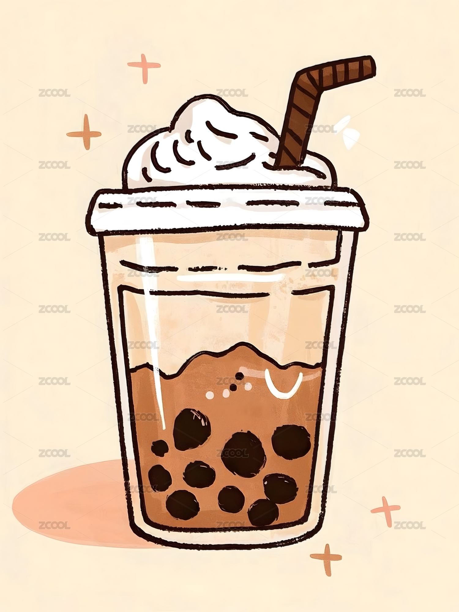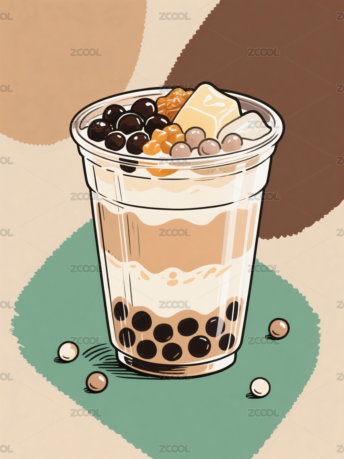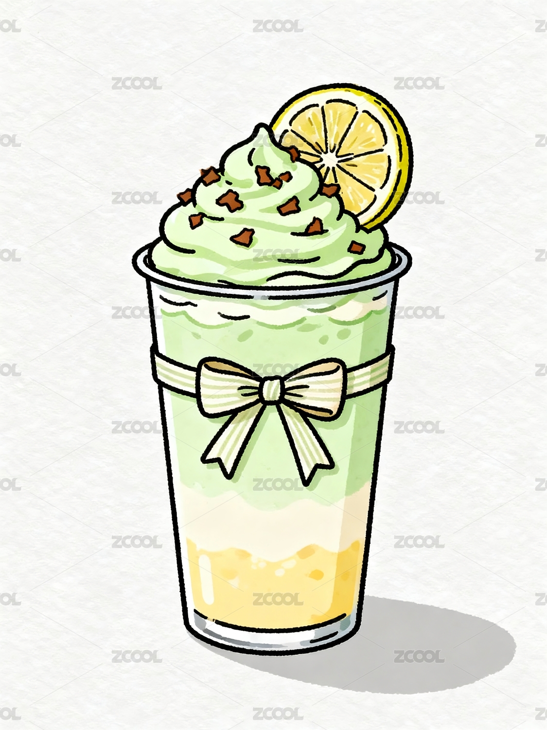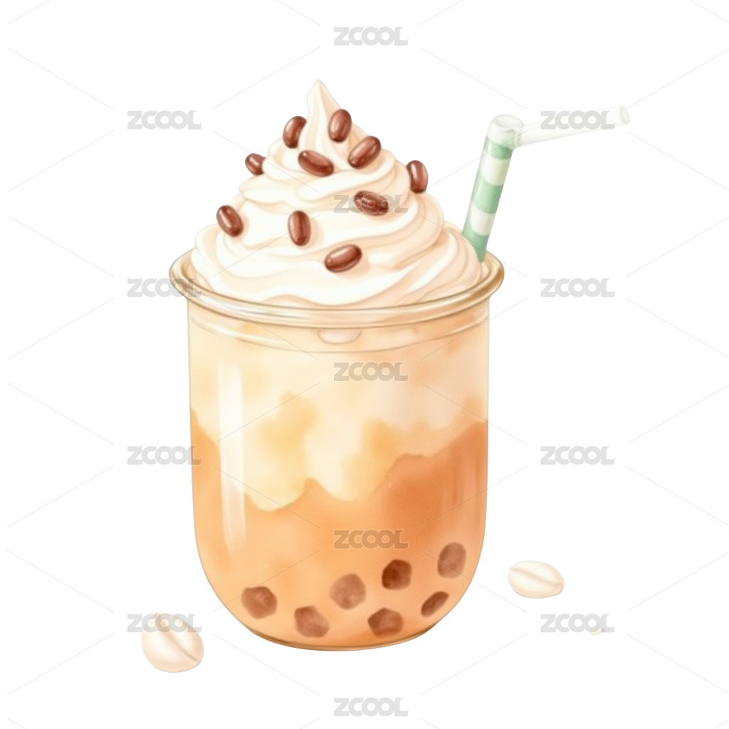 插画,夏日,冰饮,饮品,玻璃杯,奶盖,小女孩,抹茶,红豆,可爱风格