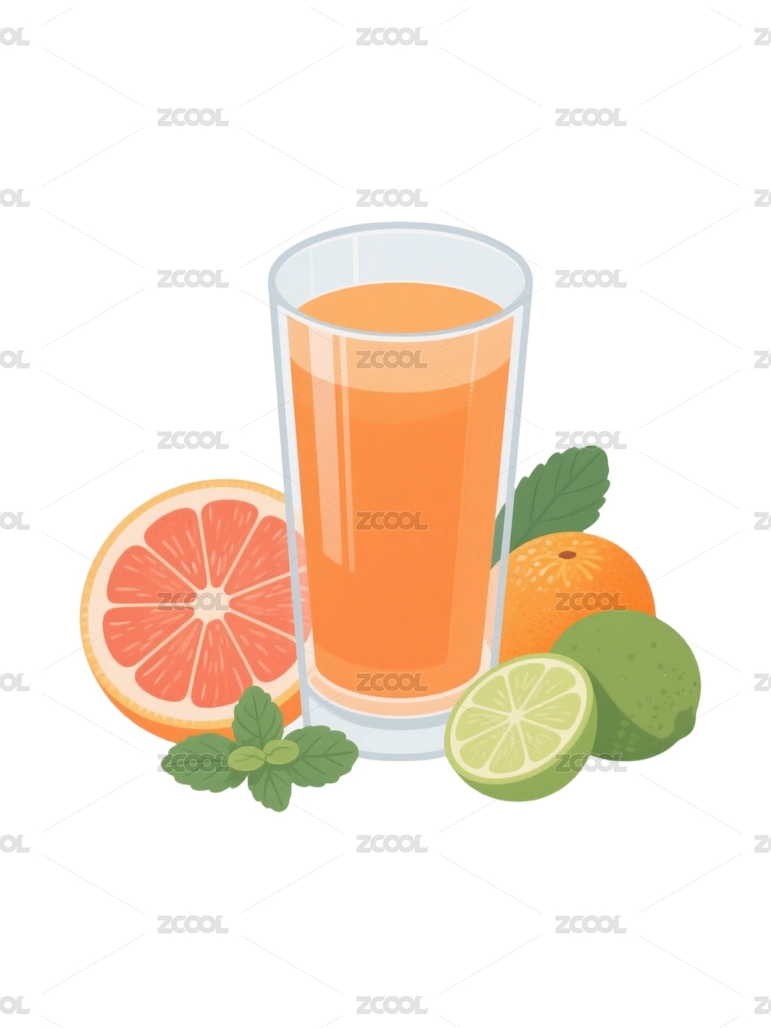 橙子汁与水果装饰插画