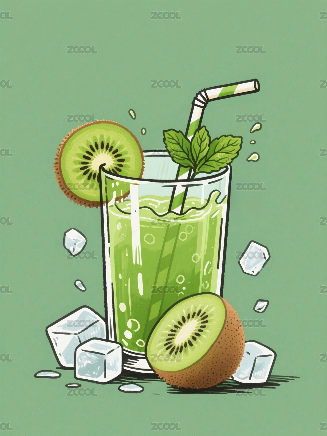 猕猴桃果汁饮品搭配冰块