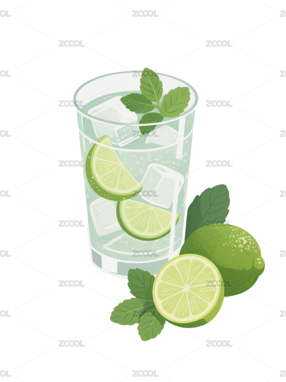 青柠薄荷冰饮插画