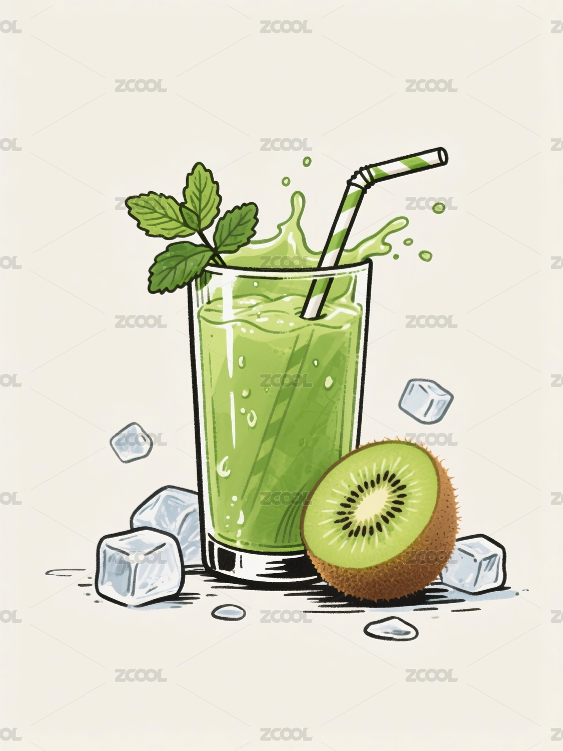 青柠薄荷绿饮插画